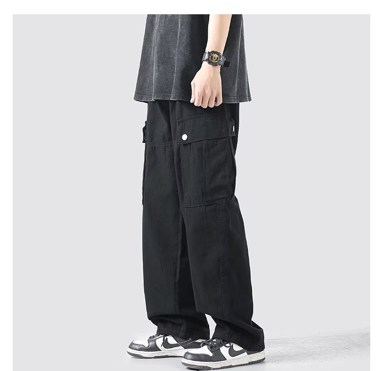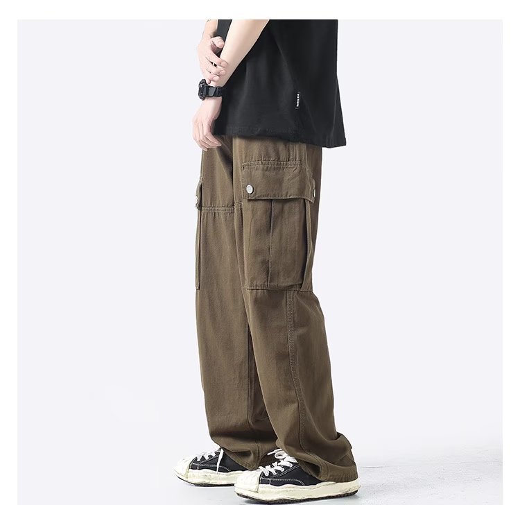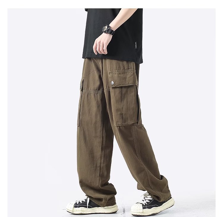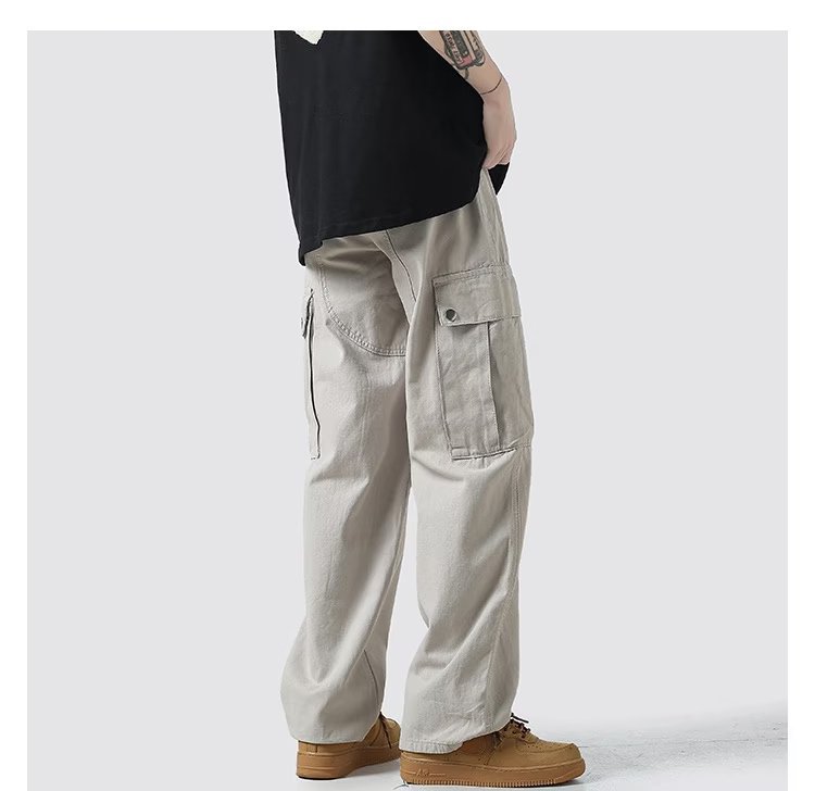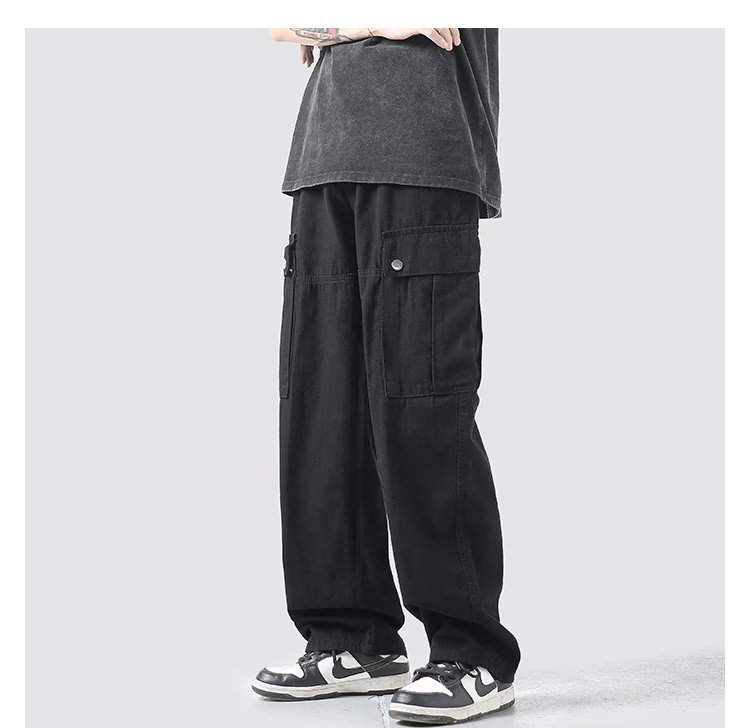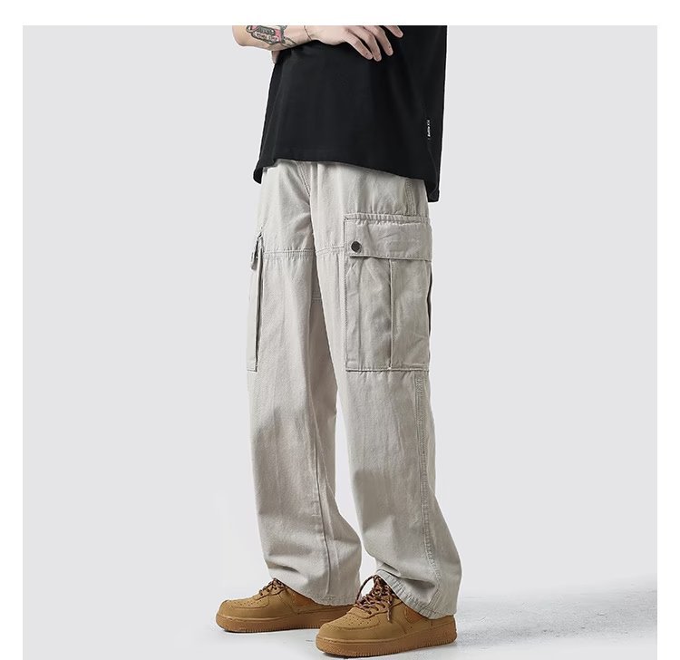 일본식 심플한 작업복 남성 봄, 가을 새로운 멀티 포켓 트렌디 캐주얼 바지 유니섹스 스타일 루즈 스트레이트 바지