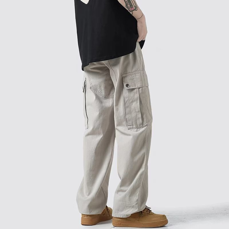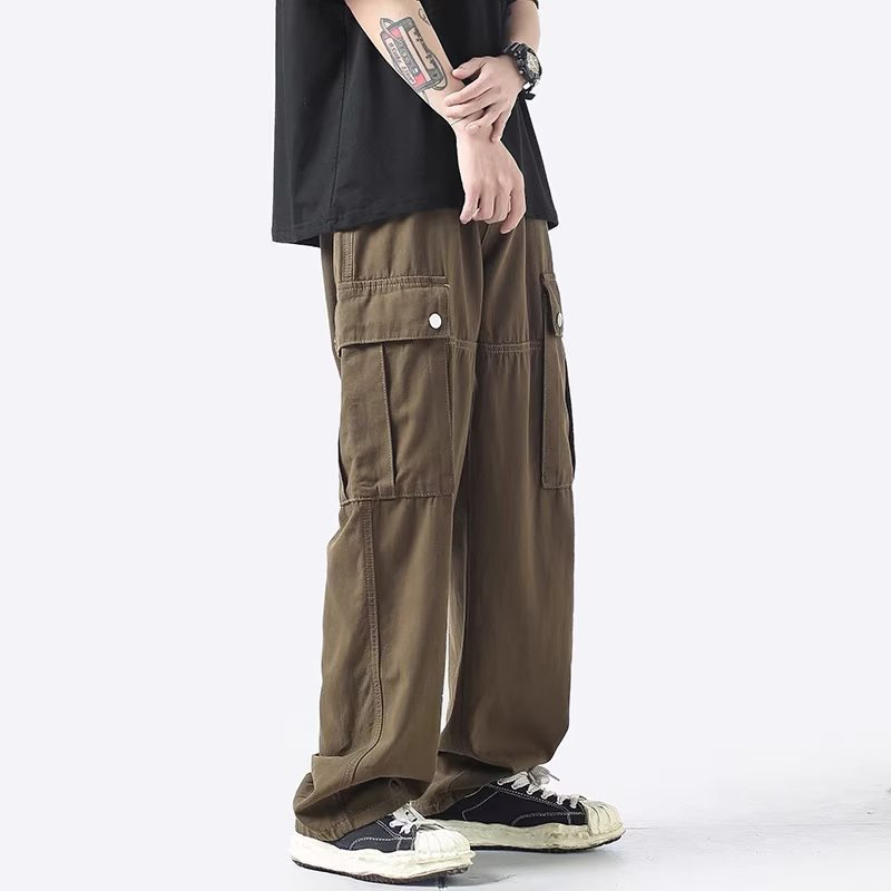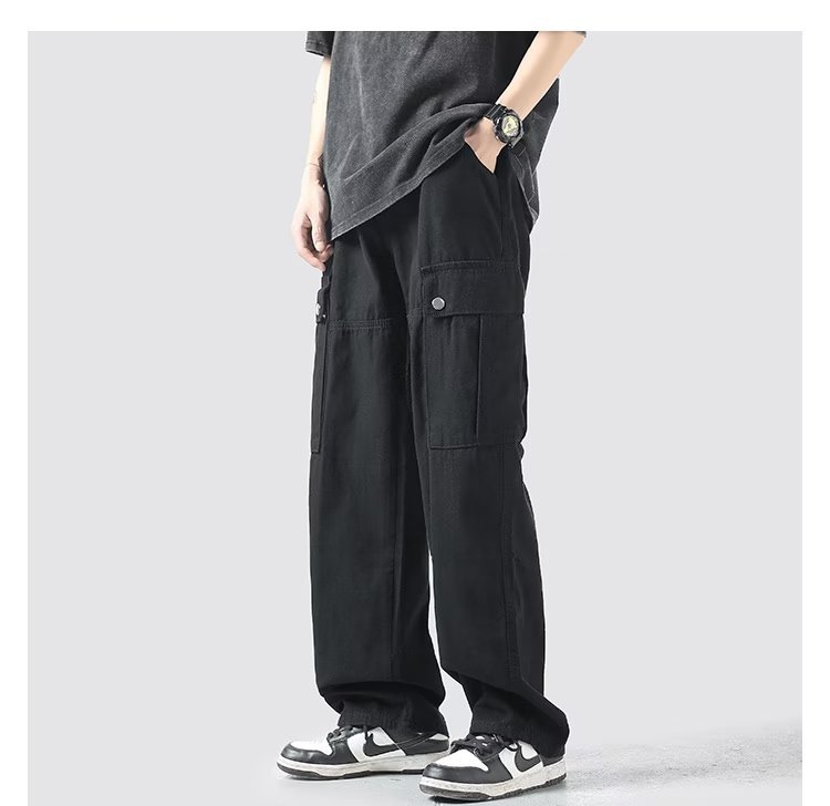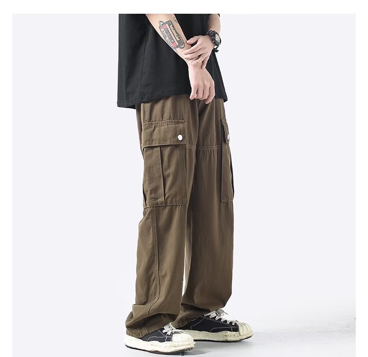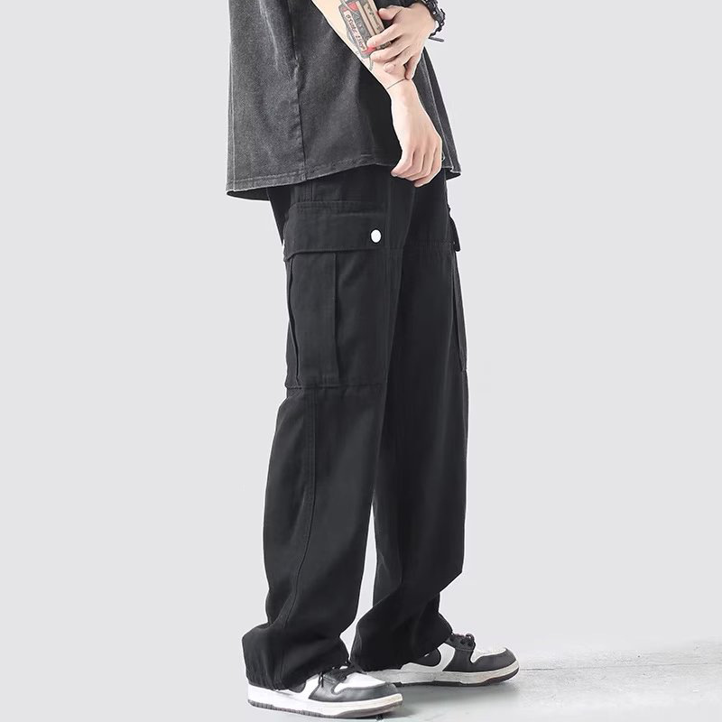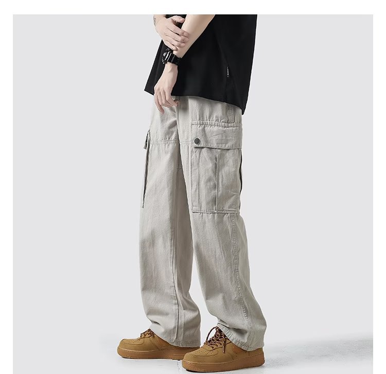 일본식 심플한 작업복 남성 봄, 가을 새로운 멀티 포켓 트렌디 캐주얼 바지 유니섹스 스타일 루즈 스트레이트 바지