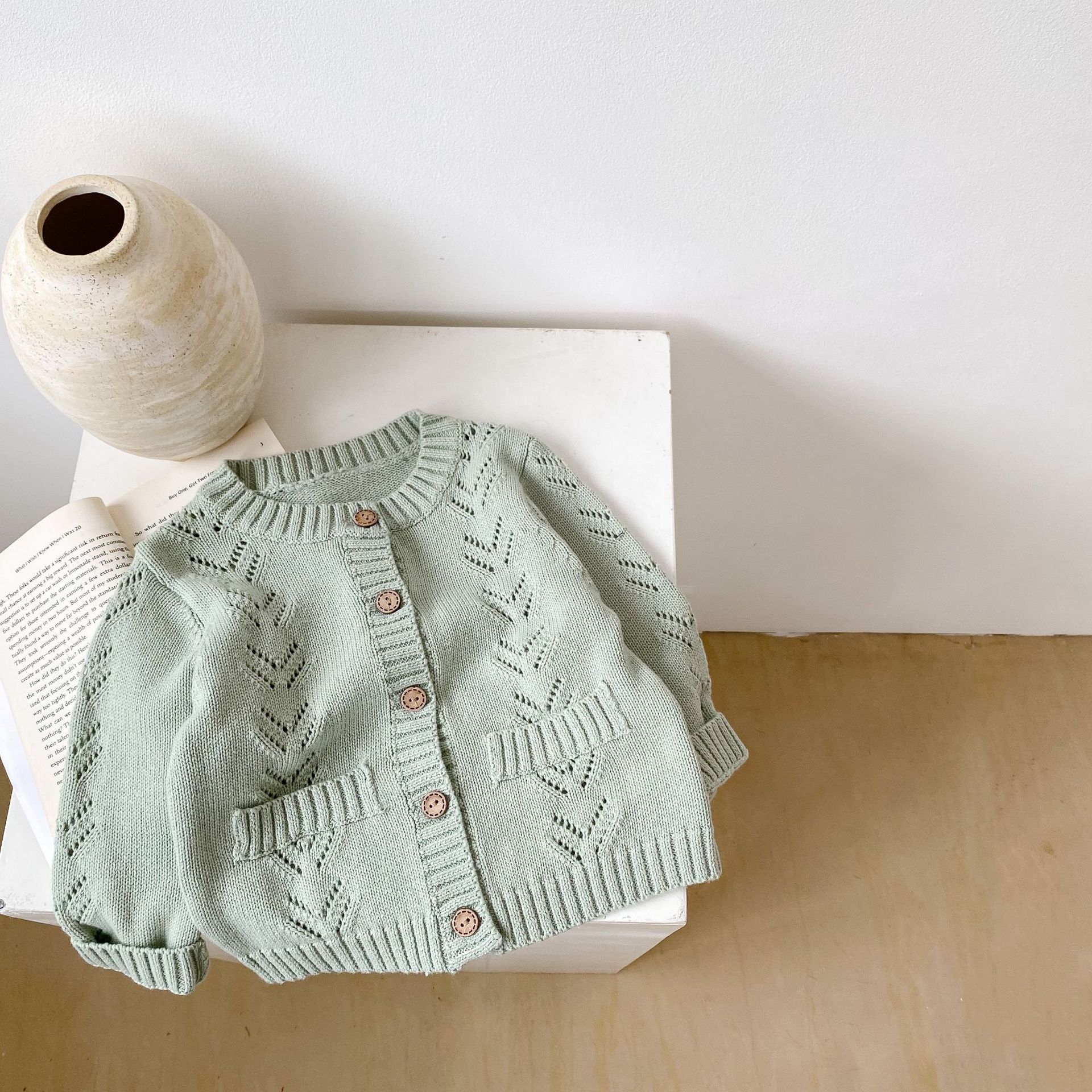 Ins 2025 남성과 여성을위한 새로운 가을 의류 베이비 솔리드 컬러 스웨터 다목적 카디건 중공 니트 코튼 원사 긴팔 자켓
