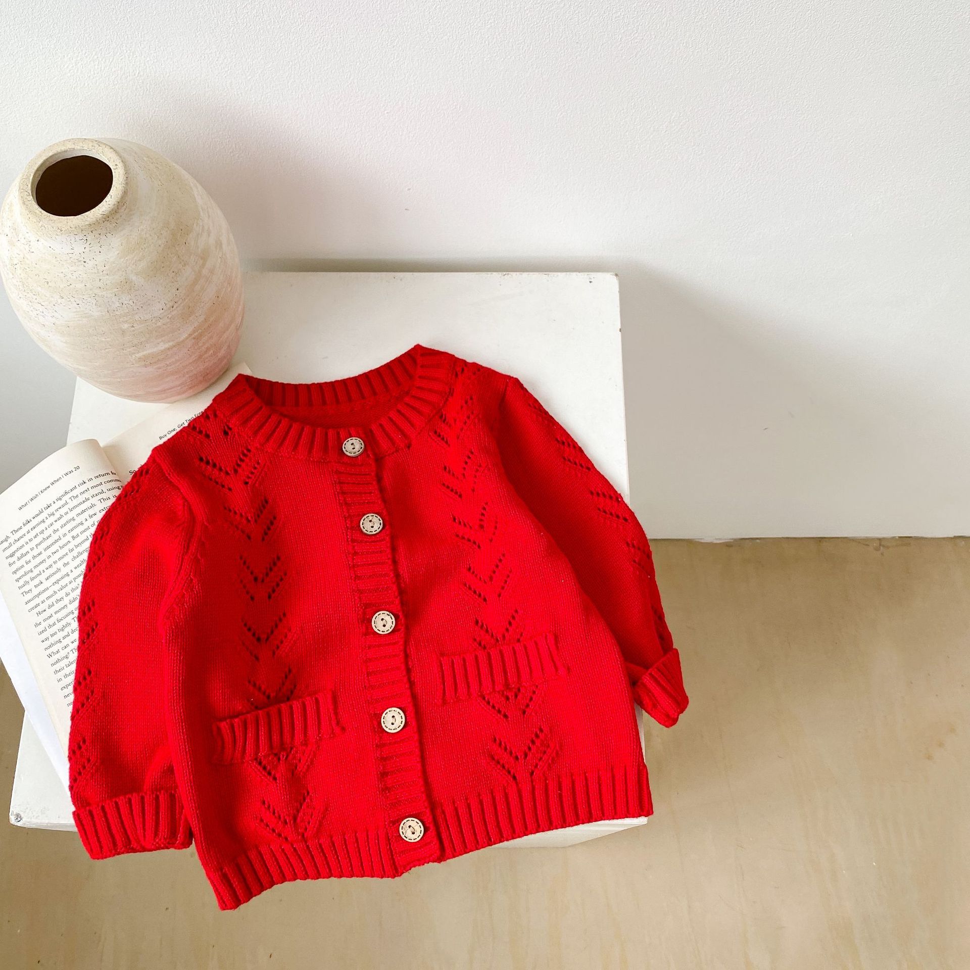Ins 2025 남성과 여성을위한 새로운 가을 의류 베이비 솔리드 컬러 스웨터 다목적 카디건 중공 니트 코튼 원사 긴팔 자켓스토어 가기