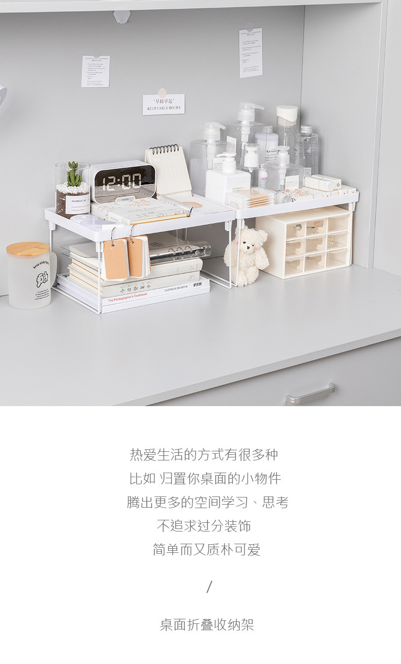 접이식 데스크탑 학생 기숙사 수납 선반, 심플하고 깔끔한 디자인의 접이식 높이 조절 가능 선반, 데스크탑 수납 선반