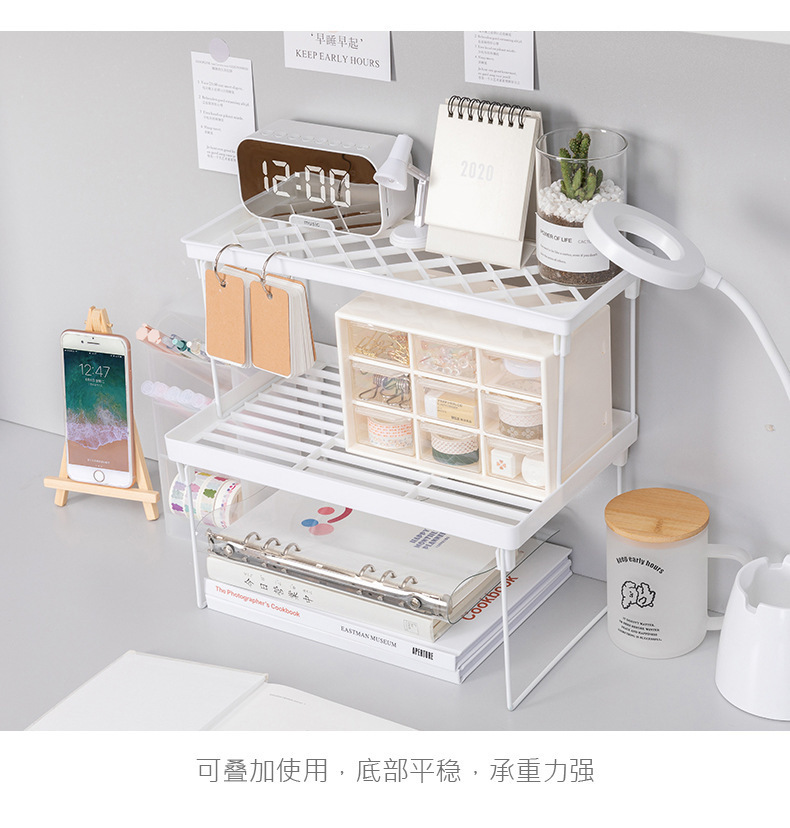 접이식 데스크탑 학생 기숙사 수납 선반, 심플하고 깔끔한 디자인의 접이식 높이 조절 가능 선반, 데스크탑 수납 선반스토어 가기
