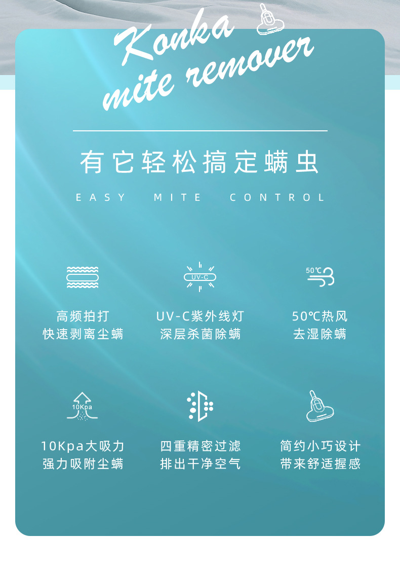 콘카 진드기 방지 및 제거기, 진드기 제거, 자외선 살균, 가정용 침대 진드기 제거 청소기, 항균 기술