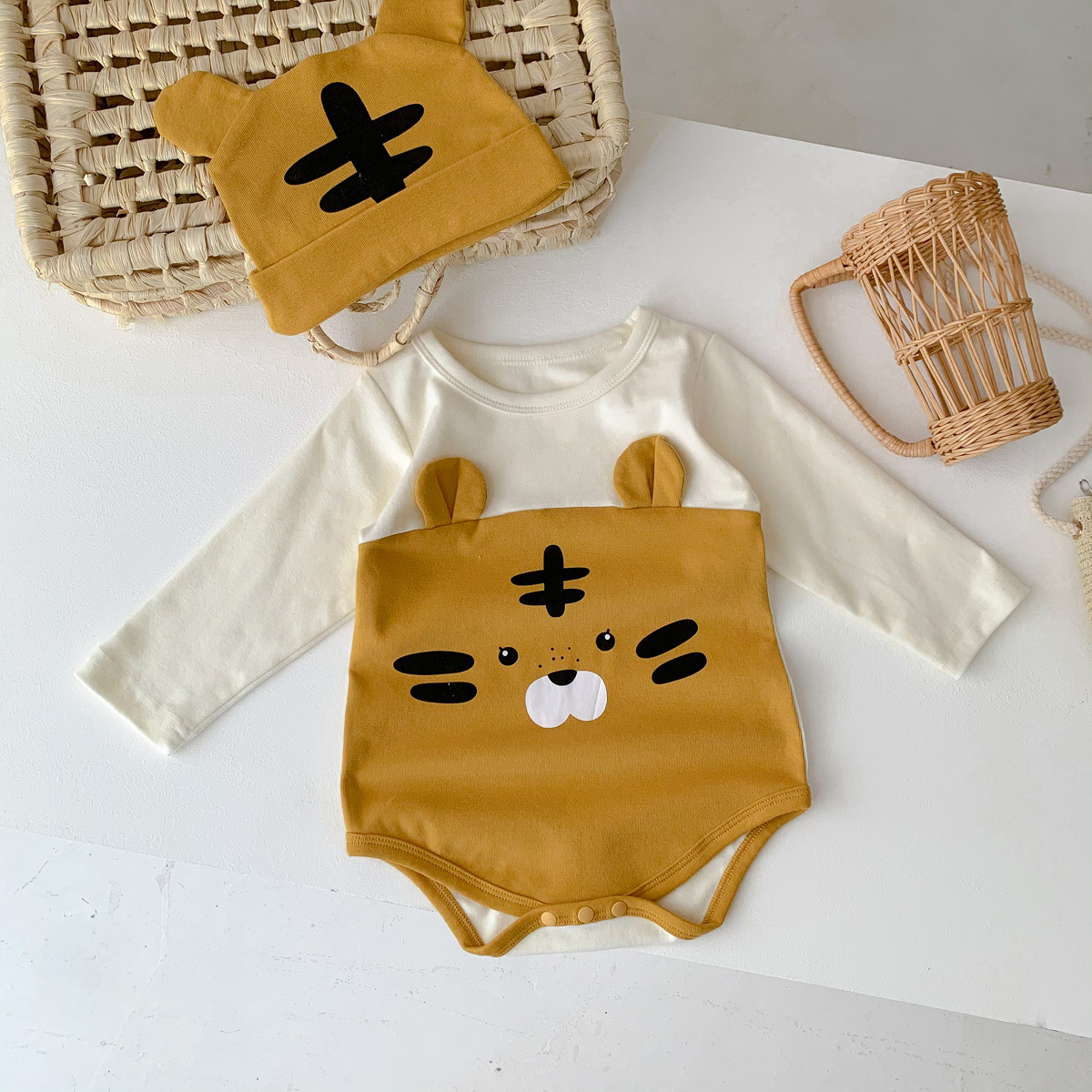 한국식 아기 봄과 가을 만화 동물 랩 하트 옷 신생아 소년과 소녀 귀여운 인쇄 등산 옷