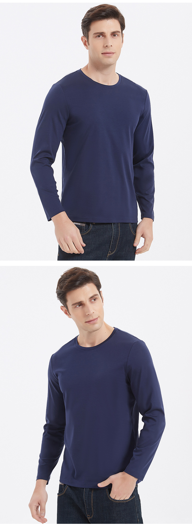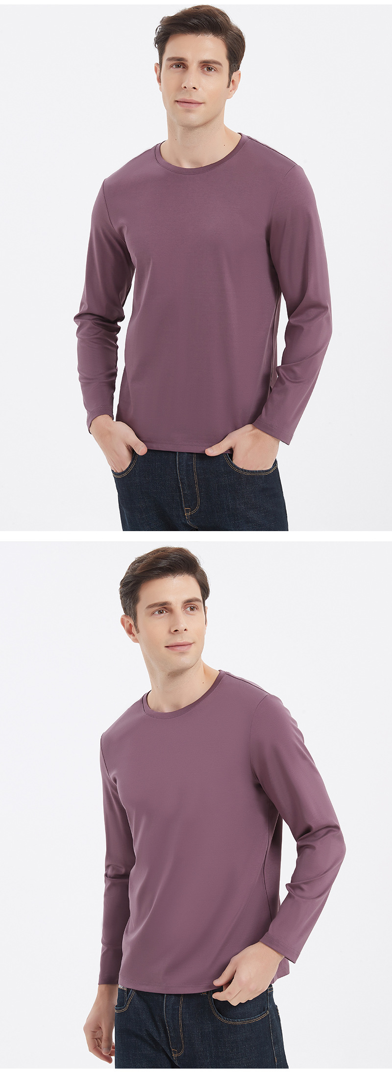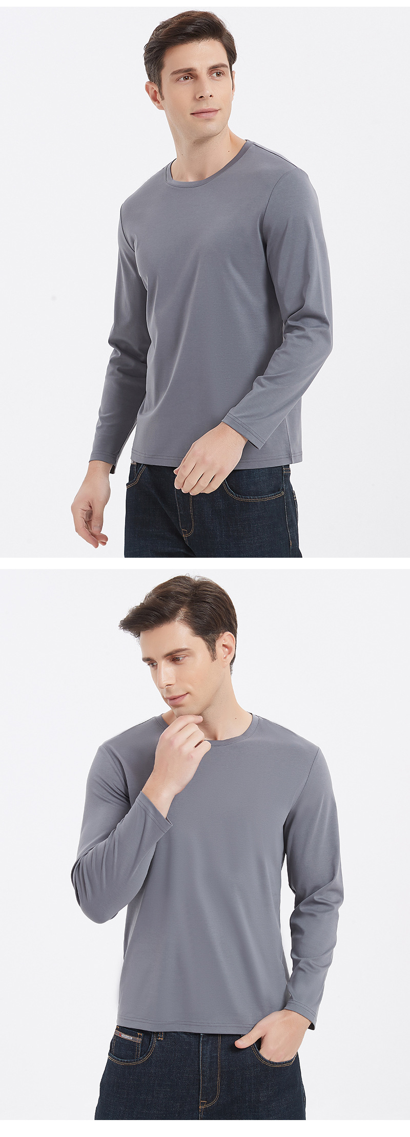 엄선된 고급 남성복 190g 양면 광택 면 단색 긴섬유 면 베이스 셔츠 남성 라운드넥 긴팔 티셔츠스토어 가기