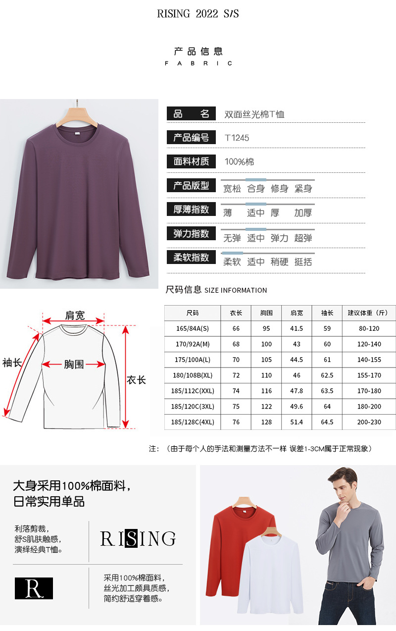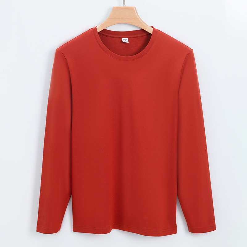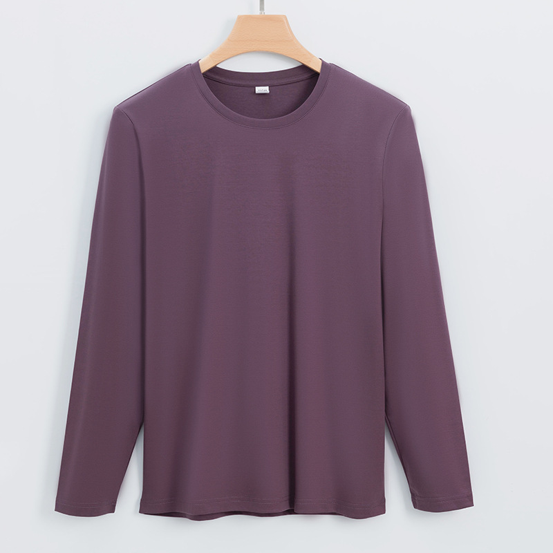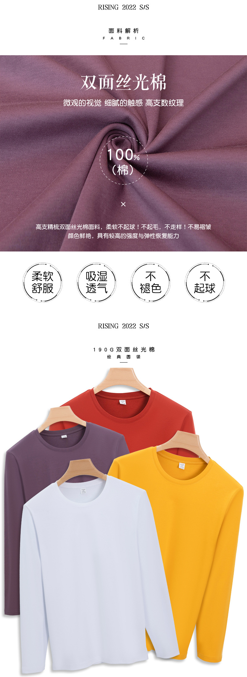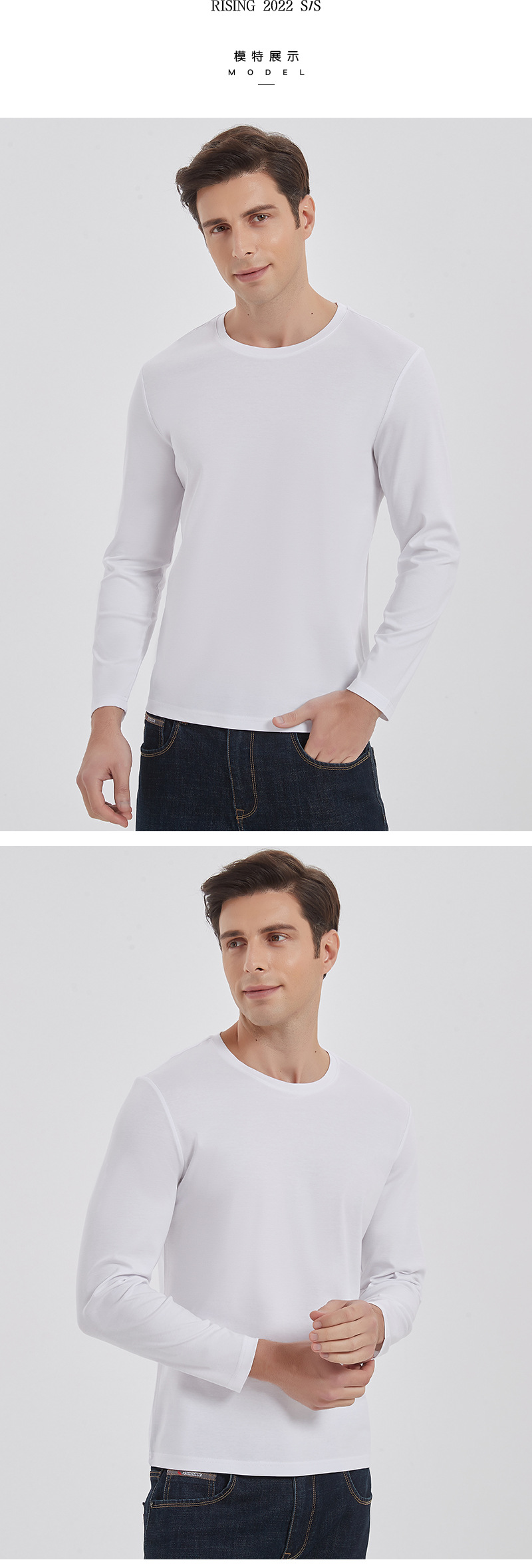 엄선된 고급 남성복 190g 양면 광택 면 단색 긴섬유 면 베이스 셔츠 남성 라운드넥 긴팔 티셔츠스토어 가기