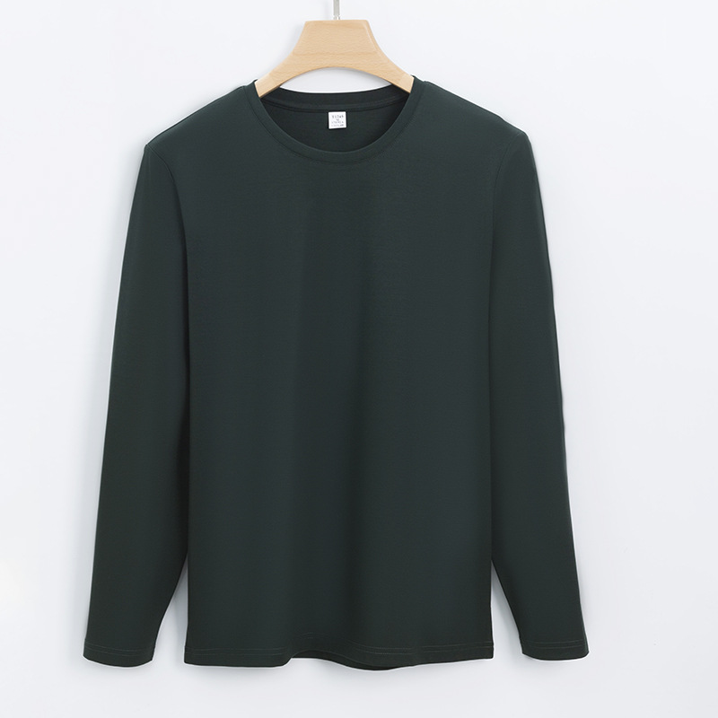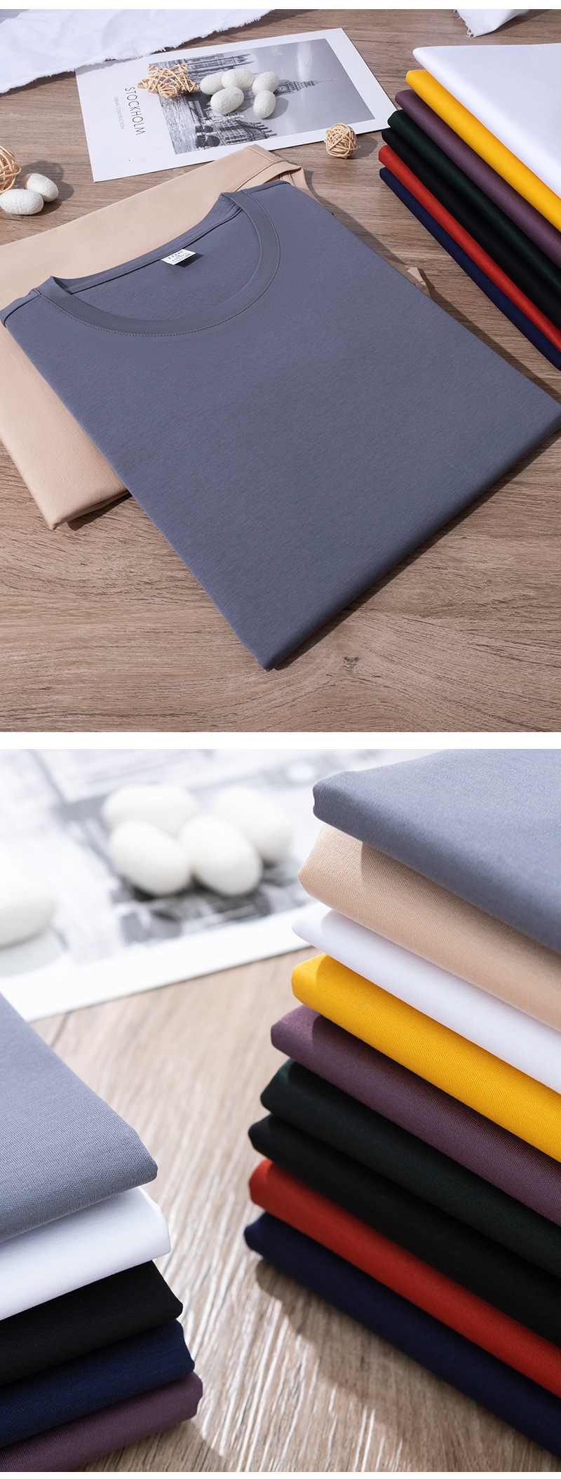 엄선된 고급 남성복 190g 양면 광택 면 단색 긴섬유 면 베이스 셔츠 남성 라운드넥 긴팔 티셔츠