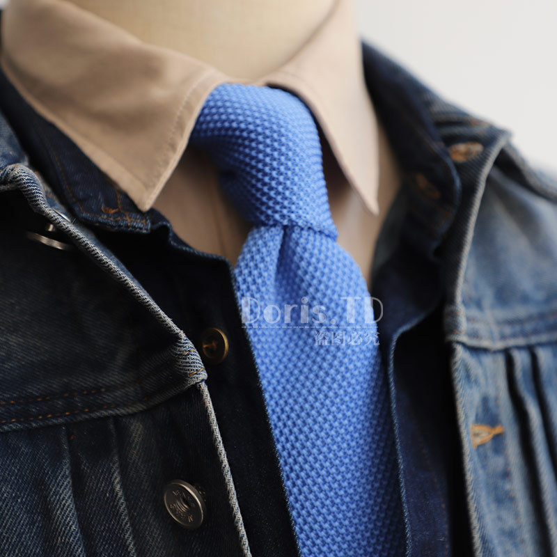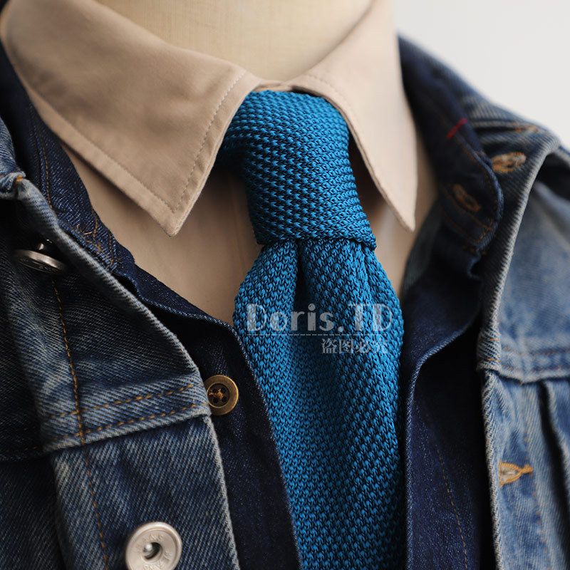 공장 도매 빈티지 블루 니트 남성 넥타이 좁은 캐주얼 6CM 한국식 울 전문 작업 패션