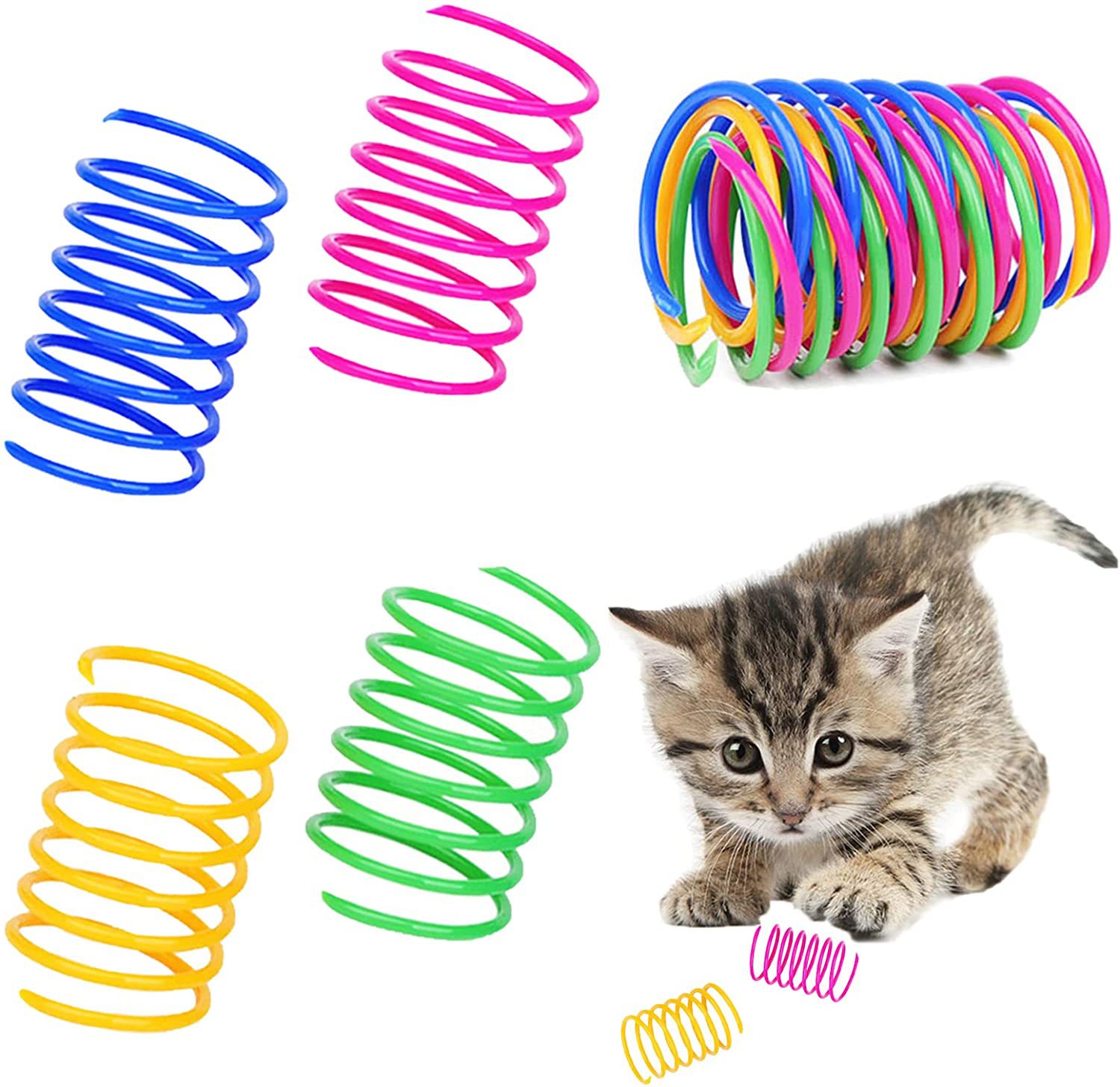 100个猫咪彩色塑料弹簧亚马逊猫玩具跳动玩具球宠物用品跨境爆款