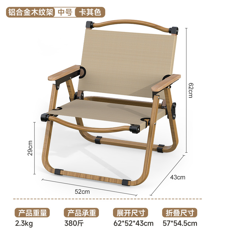 • [알루미늄 합금 우드 그레인 의자 프레임] 중형 카키-너도밤나무 팔걸이
