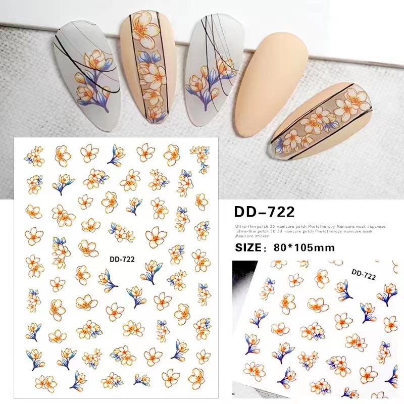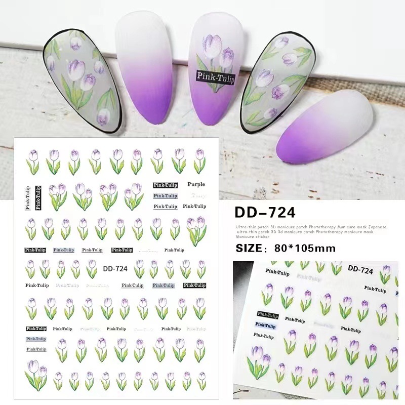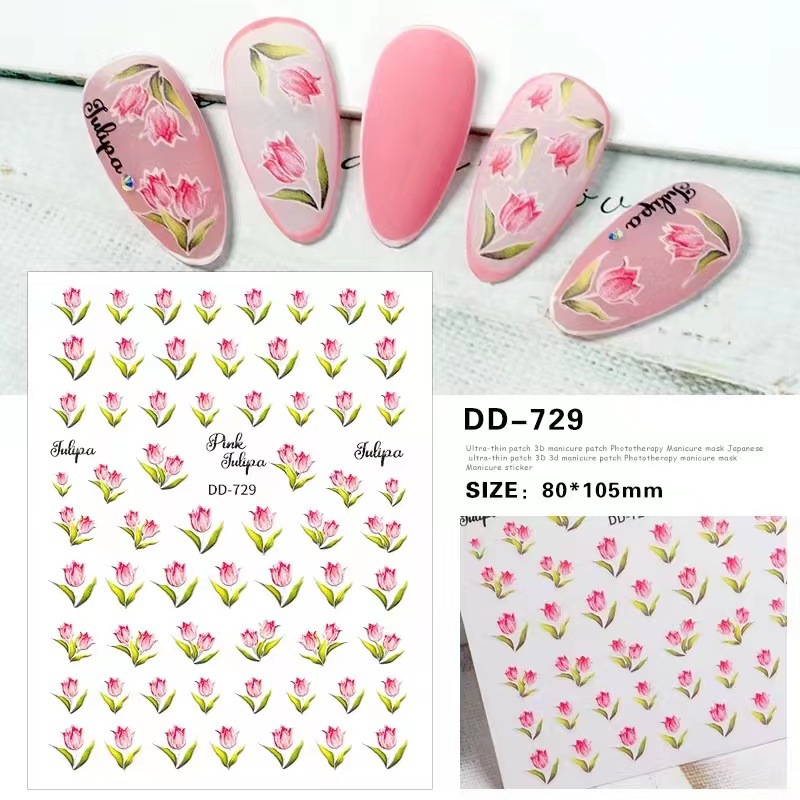 2022 네일 아트 새로운 우아한 유화 질감 튤립 작은 노란색 꽃 접착제 네일 아플리케 포장 신선한