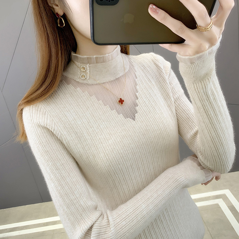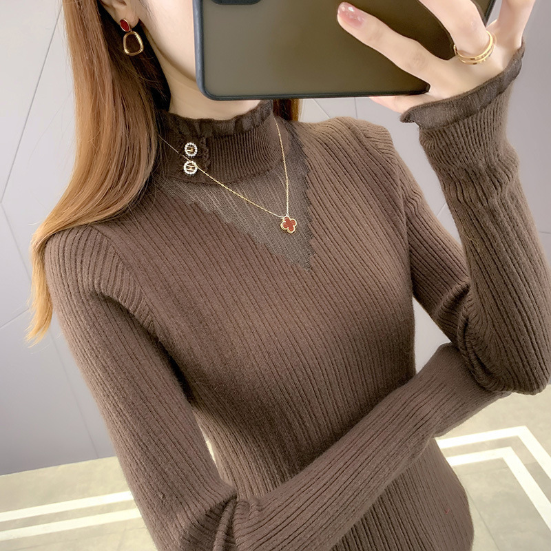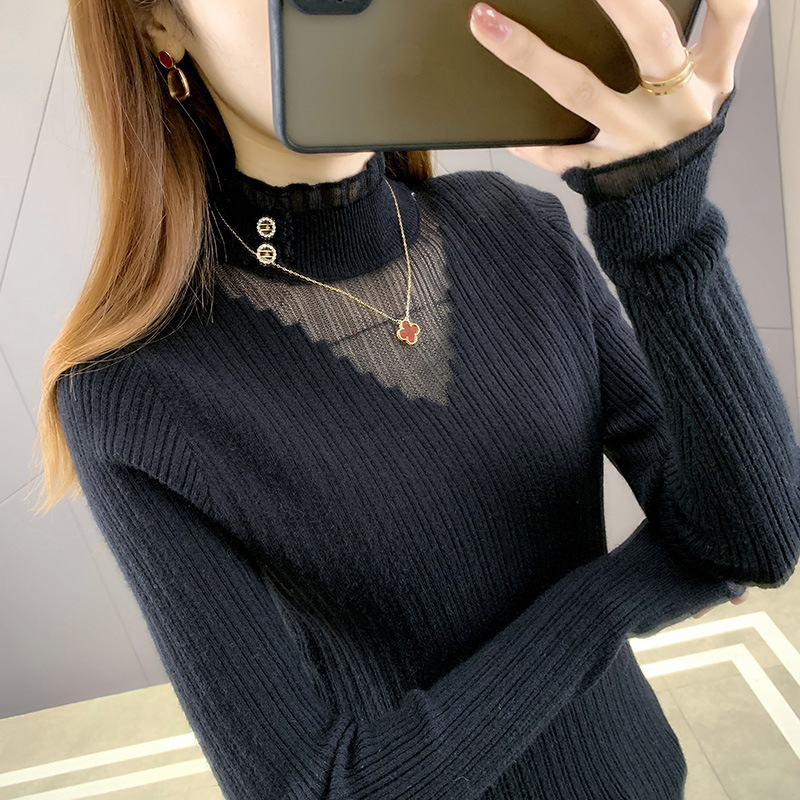 라운드넥 풀오버 니트 여성용 2024 봄 신상 슬림핏 레이스 스웨터 이너웨어 패셔너블한 베이스 레이어스토어 가기