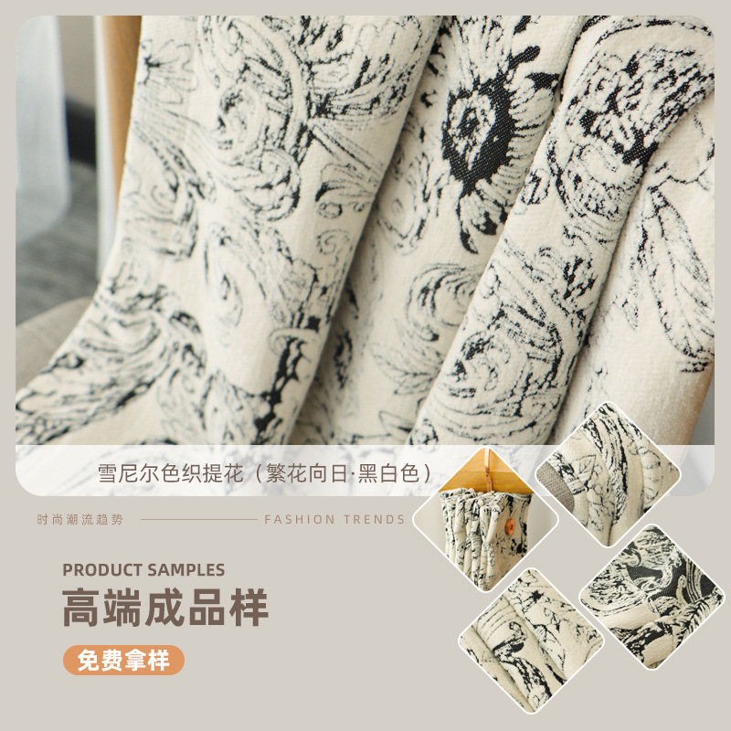 • 셔닐 실 염색 자카드 [태양에 꽃, 흑백]]