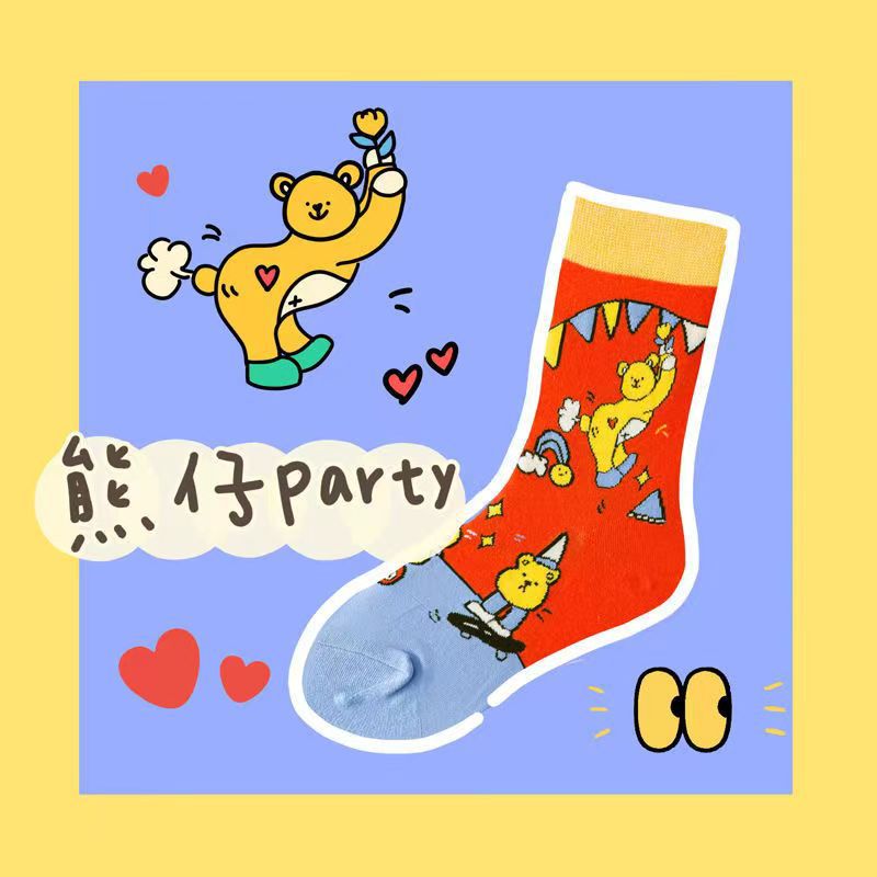재미있는 동물원 나들이 곰 화려한 색상 일치하는 창조적 인 만화 일러스트 유행 학술 스타일 튜브 양말