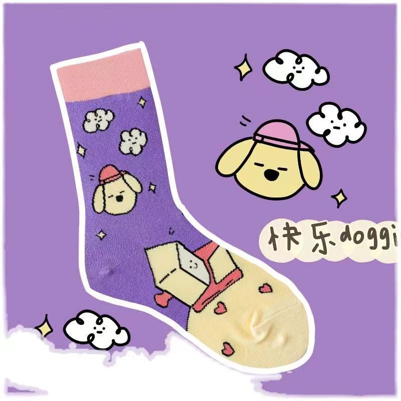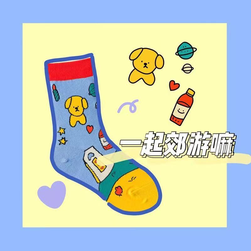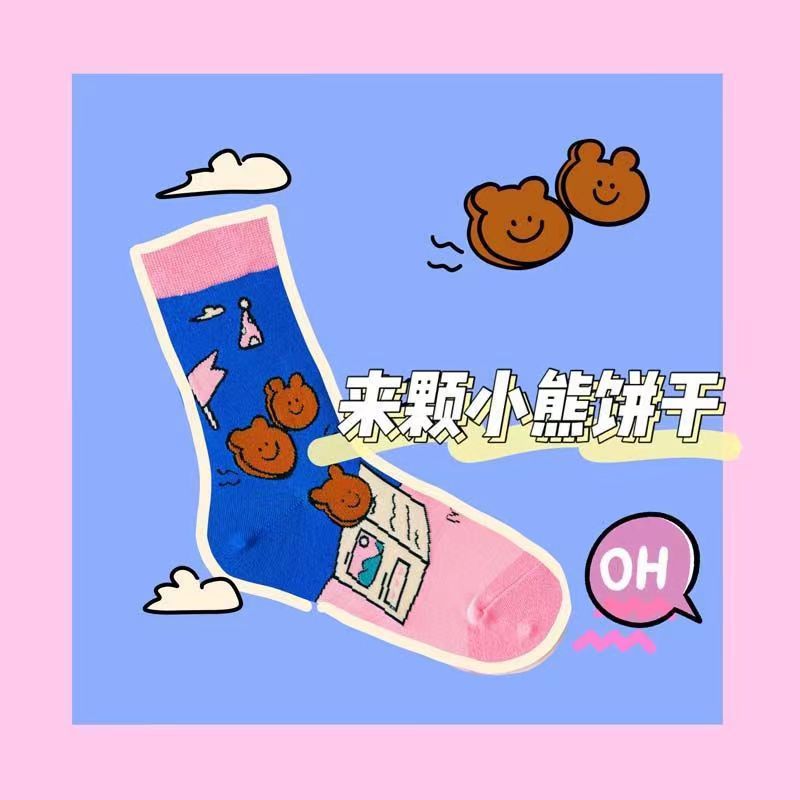 재미있는 동물원 나들이 곰 화려한 색상 일치하는 창조적 인 만화 일러스트 유행 학술 스타일 튜브 양말스토어 가기