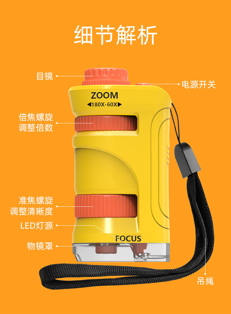 • 새로운 휴대용 현미경 영어 버전 [노란색]