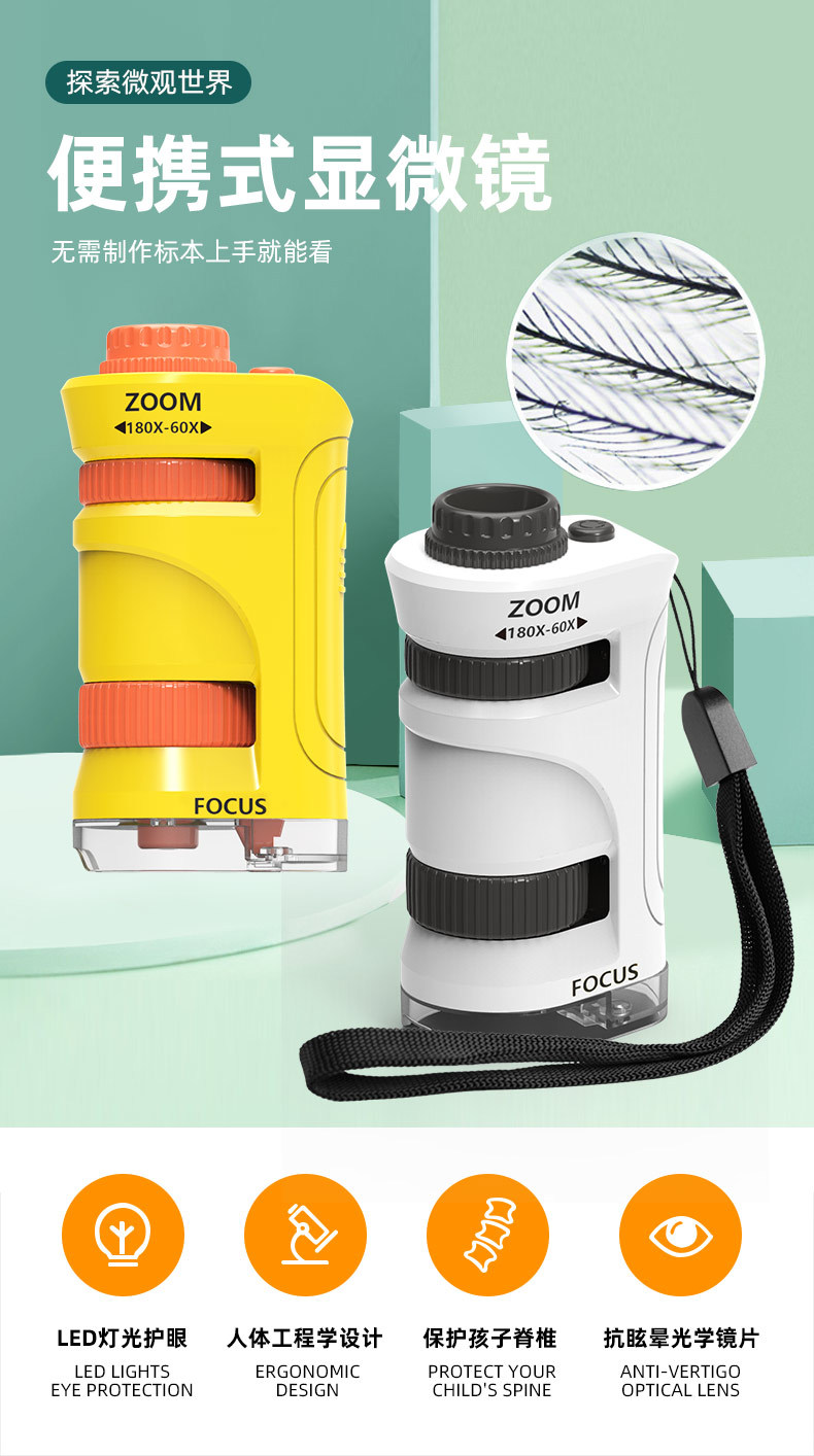 현미경 어린이 휴대용 휴대용 고화질 망원경 초등학교 학생 과학 및 교육 세트 교육 과학 실험 장난감스토어 가기