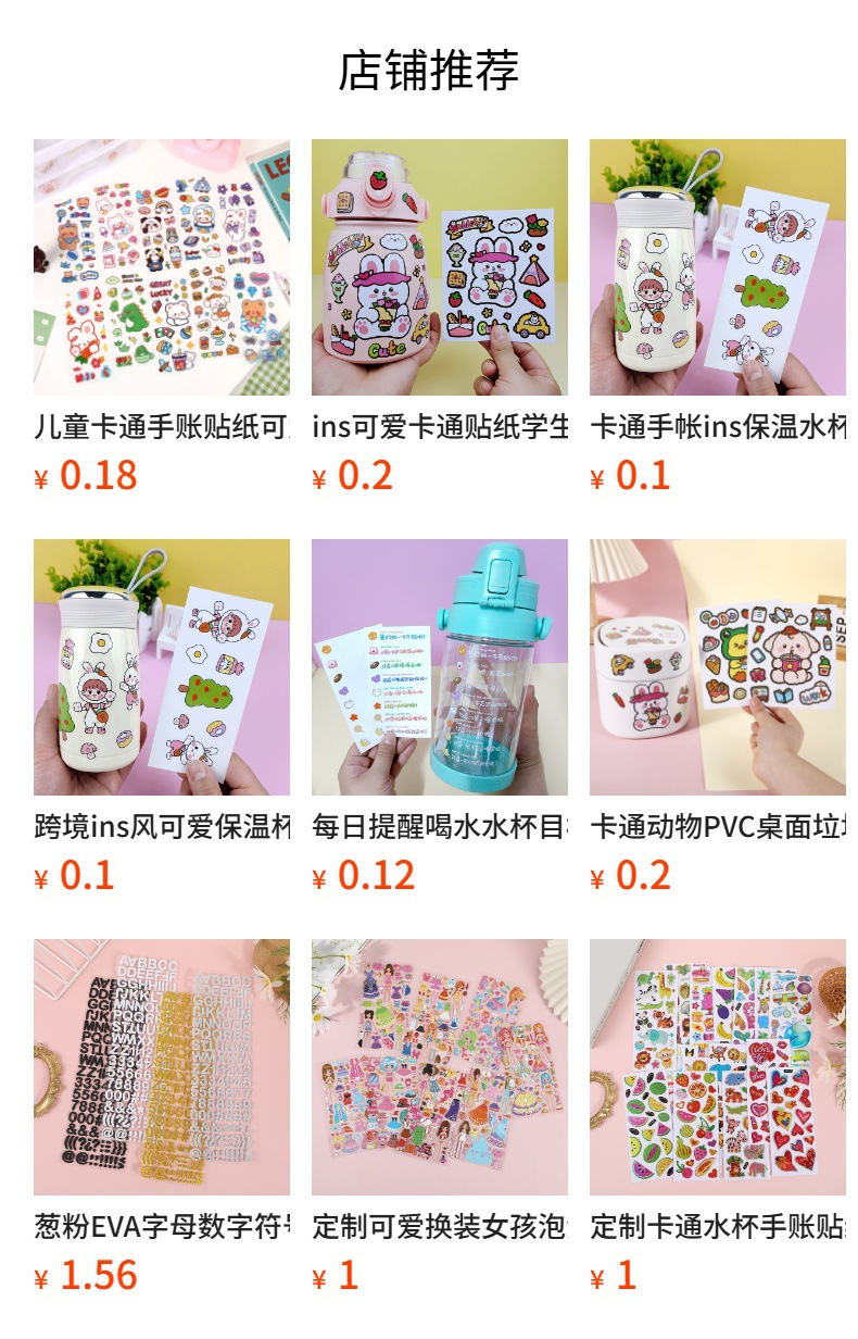 귀여운 만화 동물 컵 스티커 창조적 인 학생 손 계정 스티커 DIY 머그잔 방수 PVC 스티커 도매