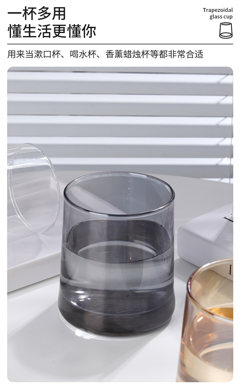 간단한 유리 구강 세정 컵, 두꺼운 고온 방지 사다리꼴 컵, 호텔 객실 칫솔 컵, 투명 아로마테라피 양초