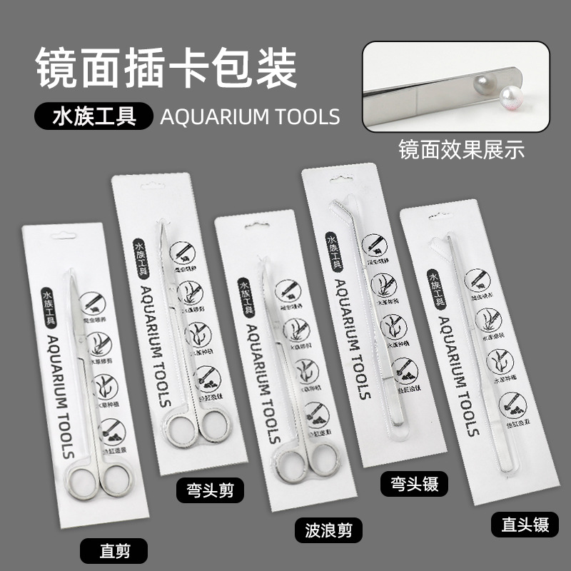 스테인레스 스틸 물 잔디 핀셋 가위 어항 청소 도구 수조 조경 도구 카드 포장