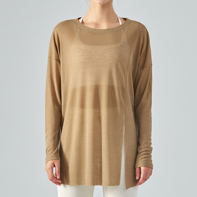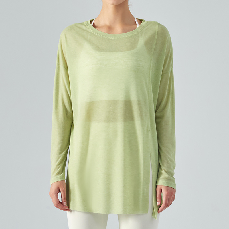 텐셀 요가 블라우스 긴 매듭 긴 소매 느슨한 얇은 스포츠 탑 캐주얼 느슨한 피트니스 착용