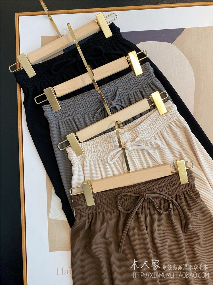 145 Little Man Drawstring High Waist Threaded 넓은 다리 바지 여성용 봄과 여름 담그는 캐주얼 바지스토어 가기