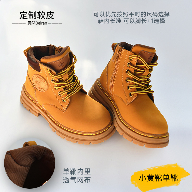어린이 마틴 부츠 대황 부츠 중대형 어린이 짧은 부츠 코튼 부츠 가을과 겨울 부츠 남성과 여성의 가죽 신발 두꺼운 단독 미끄럼 방지 패션 부츠 파우더