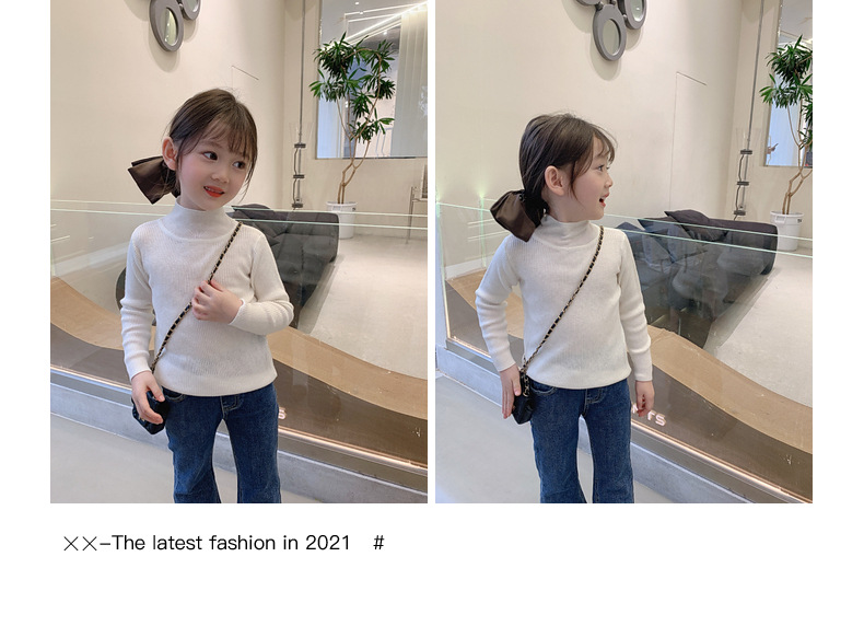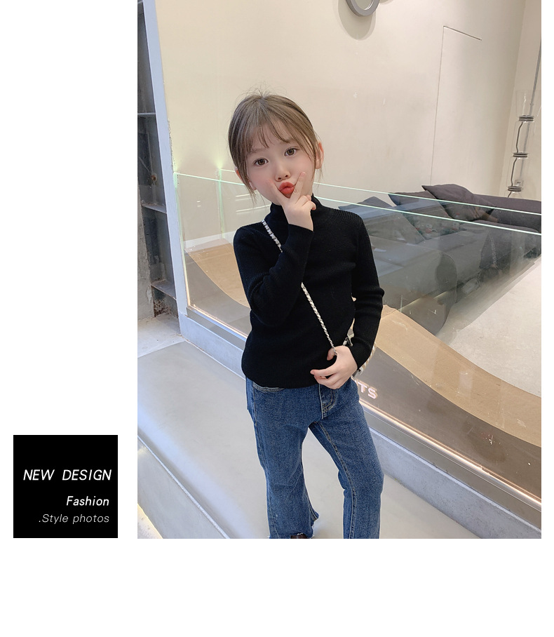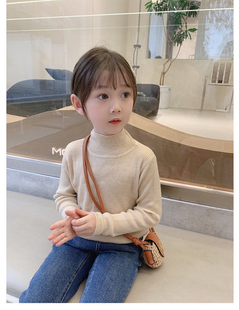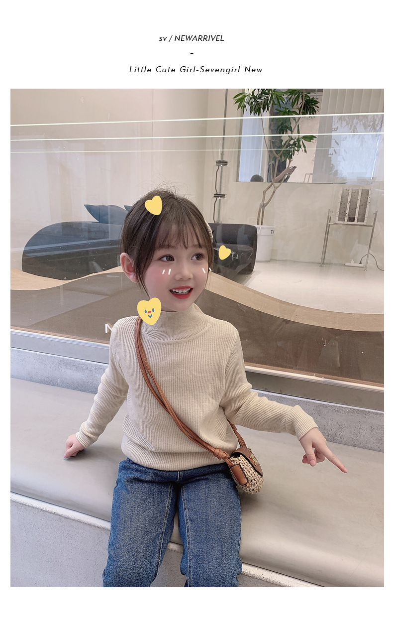 여아용 풀오버 스웨터 아동복 2025 신상 아동용 가을 겨울 반터틀넥 니트 울 베이스 셔츠 유아용스토어 가기