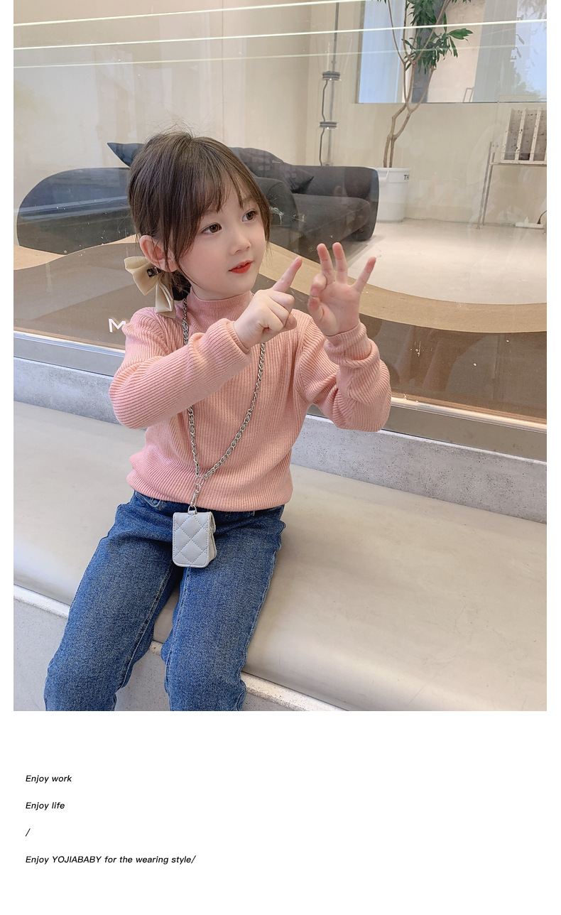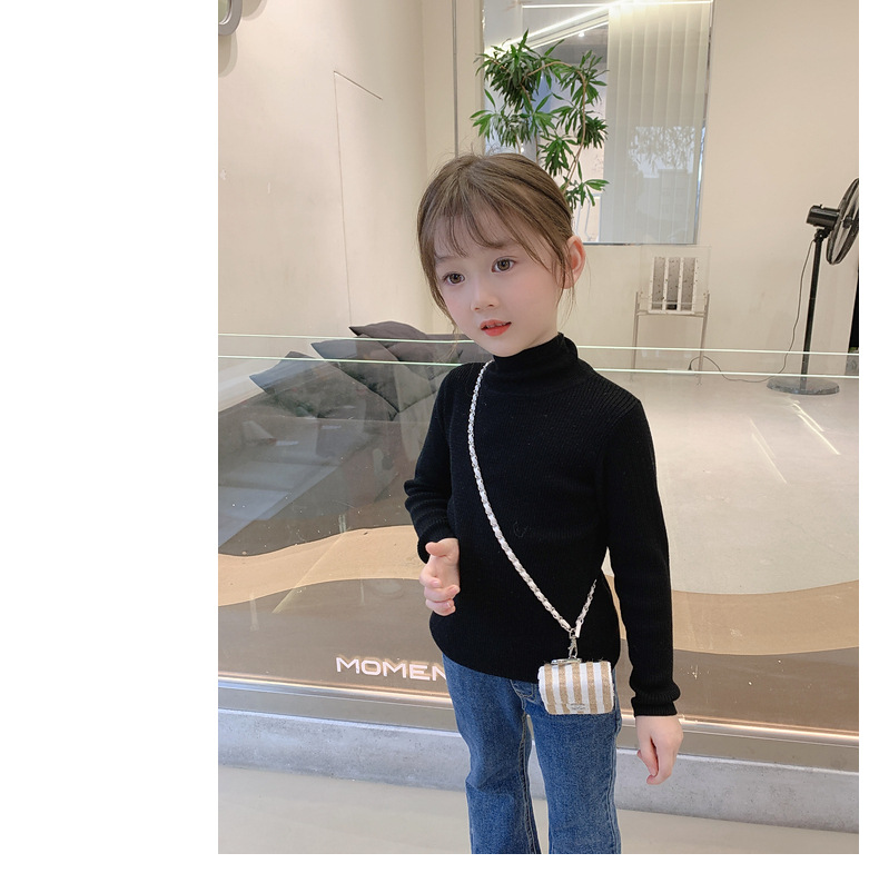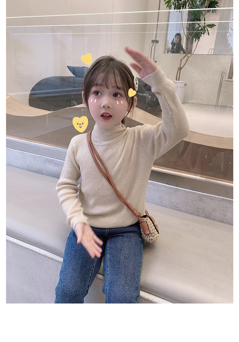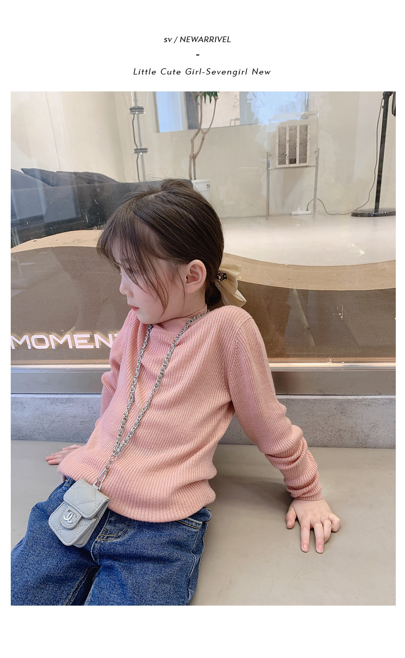 여아용 풀오버 스웨터 아동복 2025 신상 아동용 가을 겨울 반터틀넥 니트 울 베이스 셔츠 유아용스토어 가기
