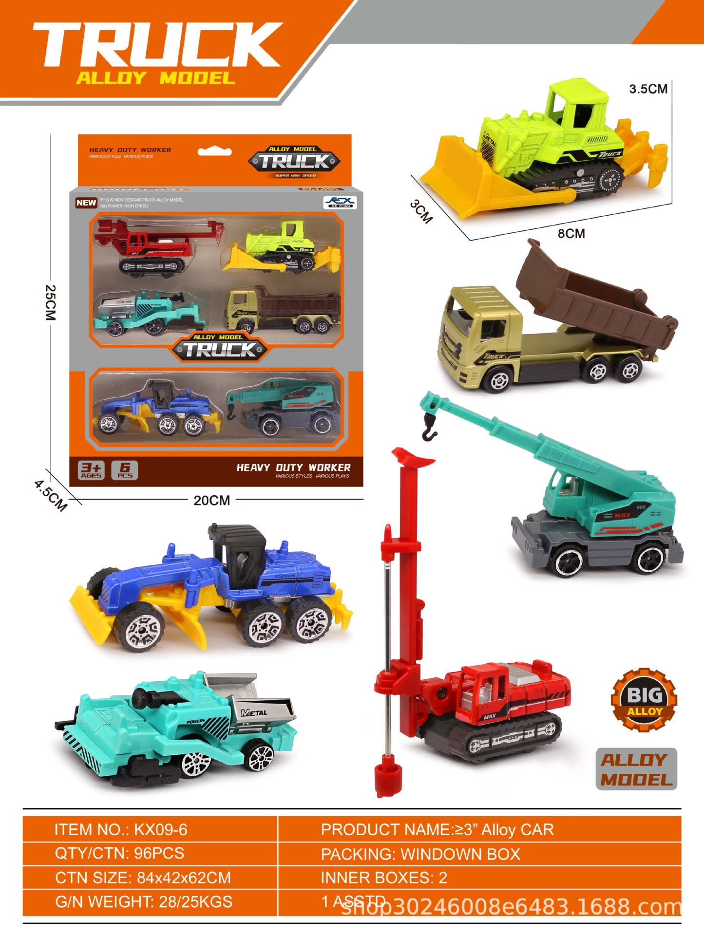 • 컬러 도로 수리 엔지니어링 차량 단일 박스 샷 6 세트 (6 모델/단일 랜덤)