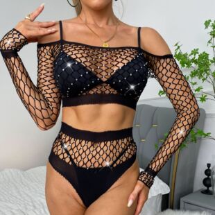 새로운 스타일 섹시 속옷 여성의 섹시 단순 가슴 노출 플러스 사이즈 유럽과 미국 성인 오픈 파일 노 이륙 블랙 실크 메쉬 양말 잠옷