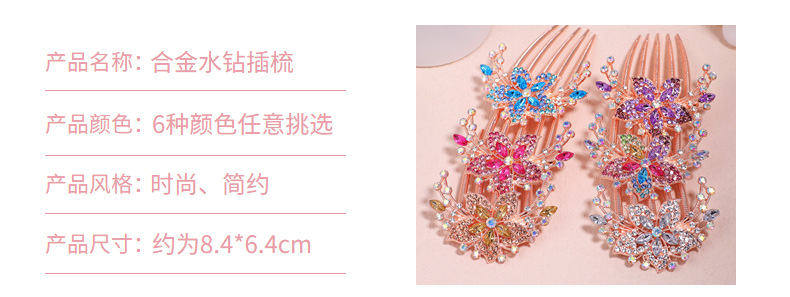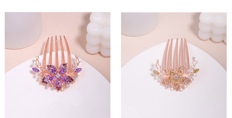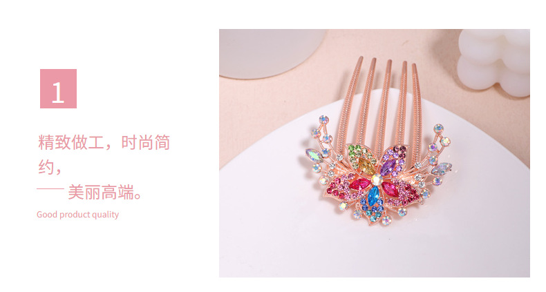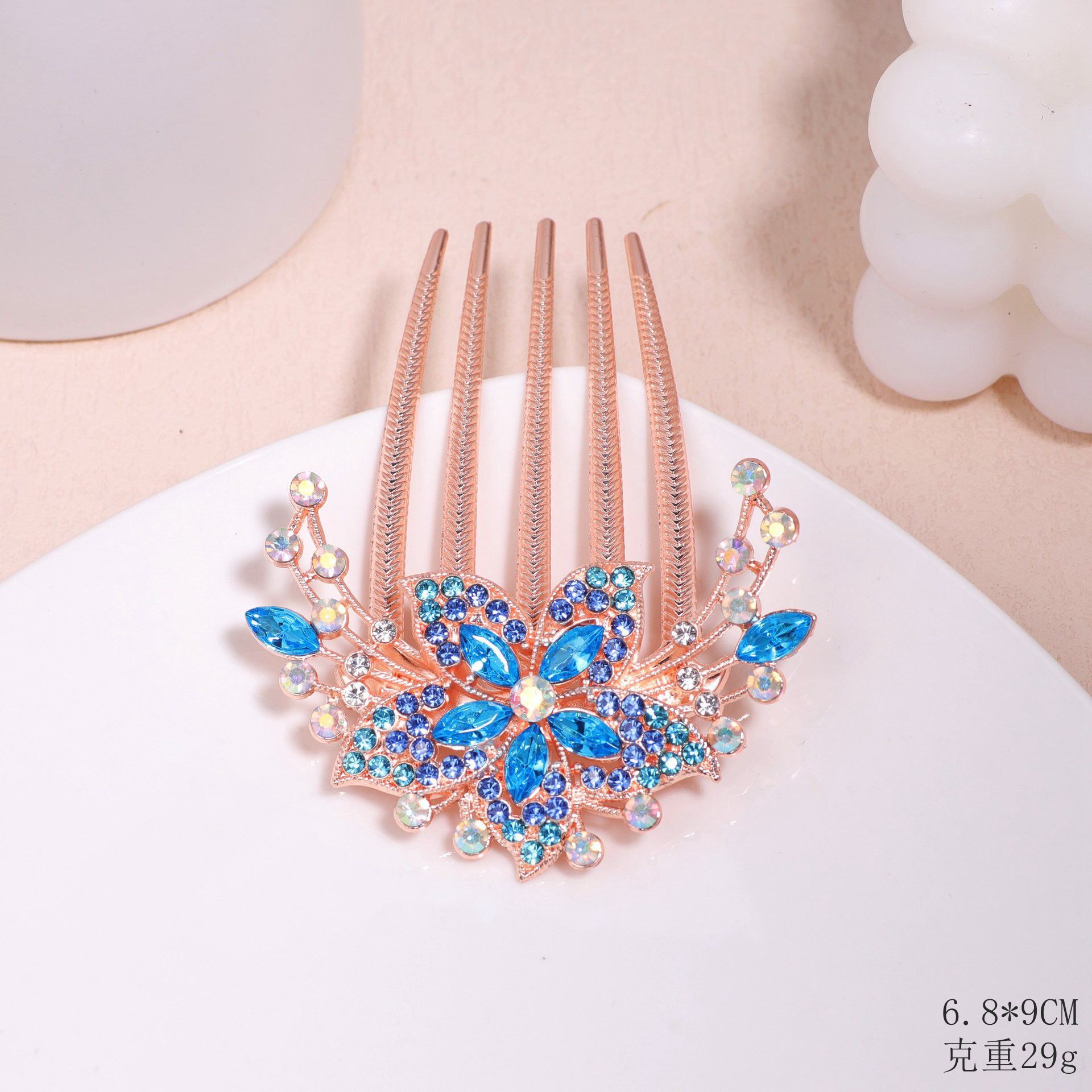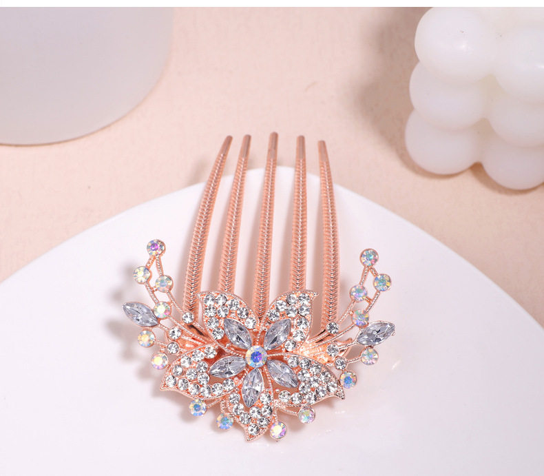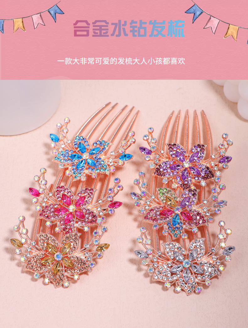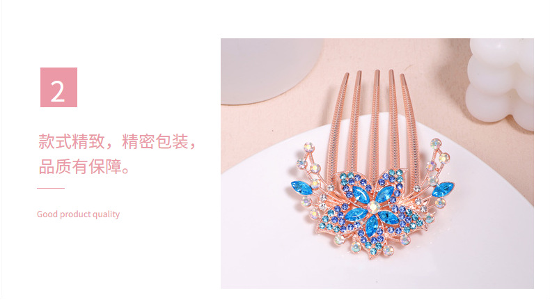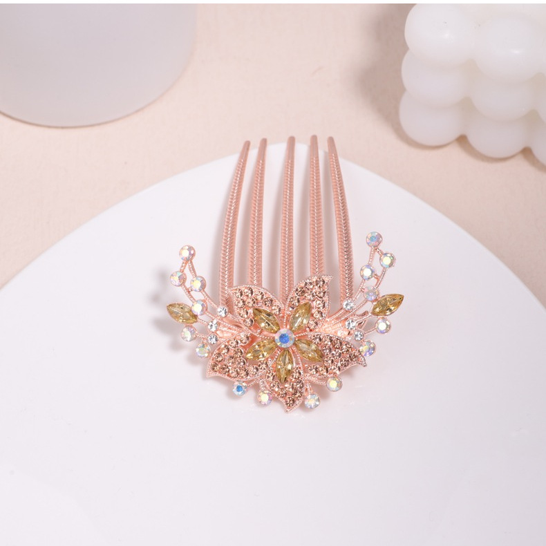 한국 스타일의 물방울 모양 큐빅 장식 꽃잎 모양 빗, 한국 신상 헤어 액세서리, 5치 빗, 다용도 머리핀, 포니테일, 도금 도매스토어 가기