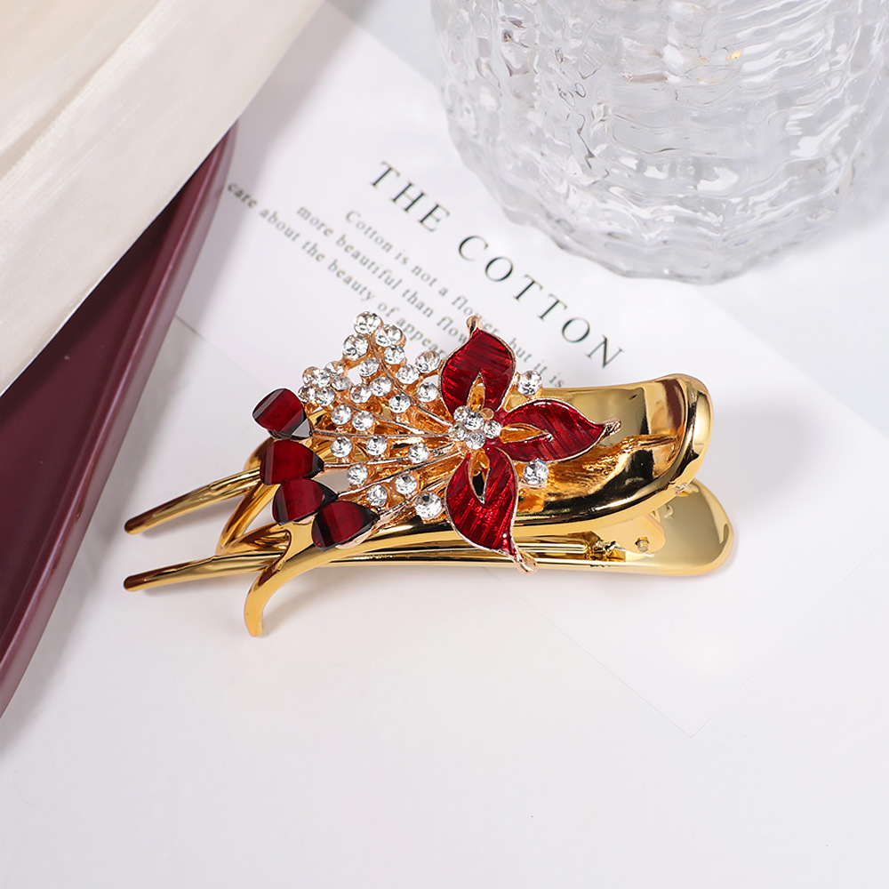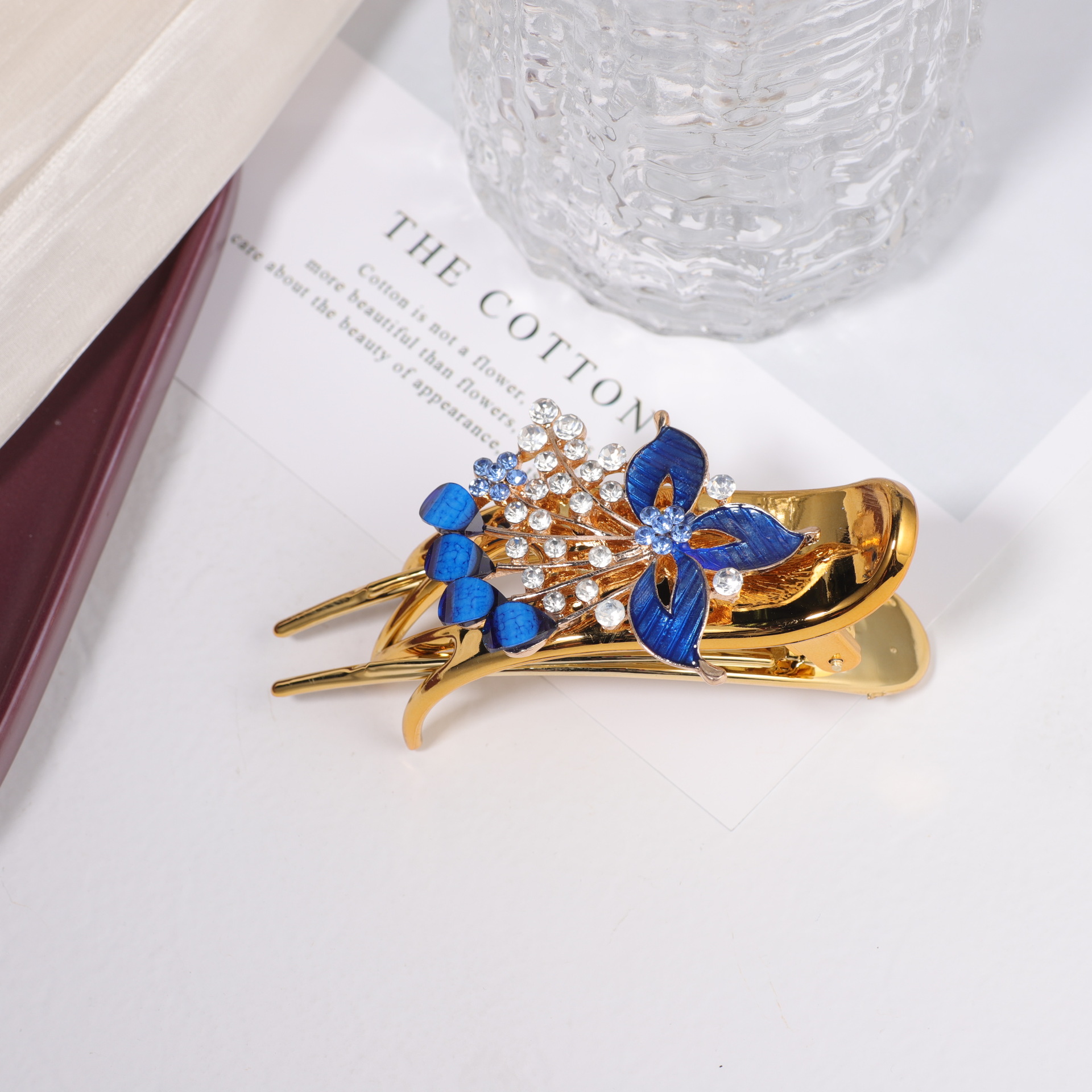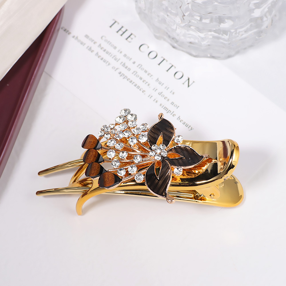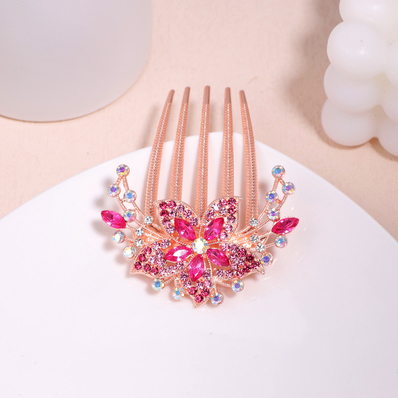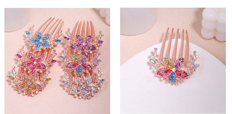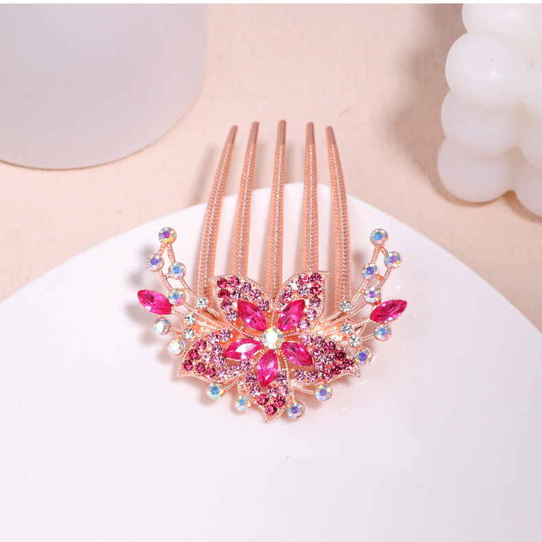 한국 스타일의 물방울 모양 큐빅 장식 꽃잎 모양 빗, 한국 신상 헤어 액세서리, 5치 빗, 다용도 머리핀, 포니테일, 도금 도매스토어 가기
