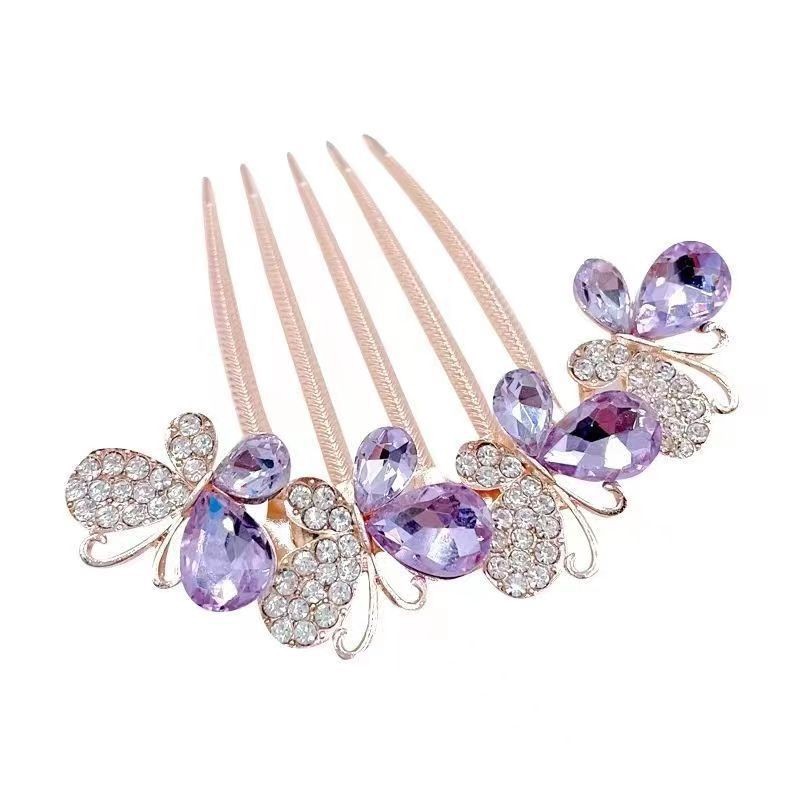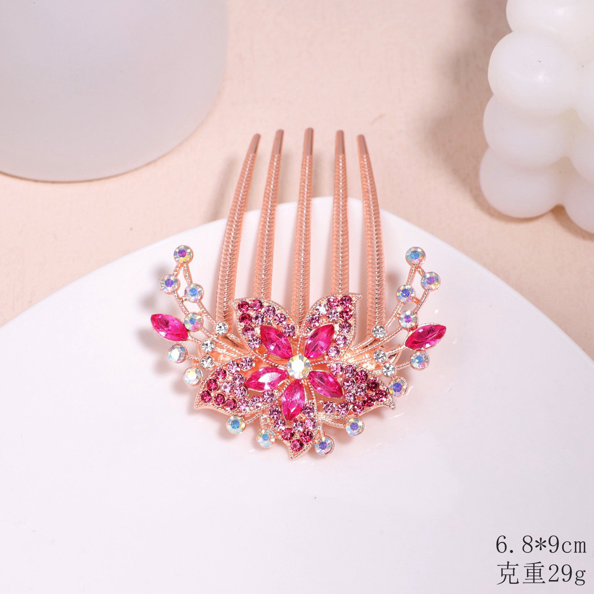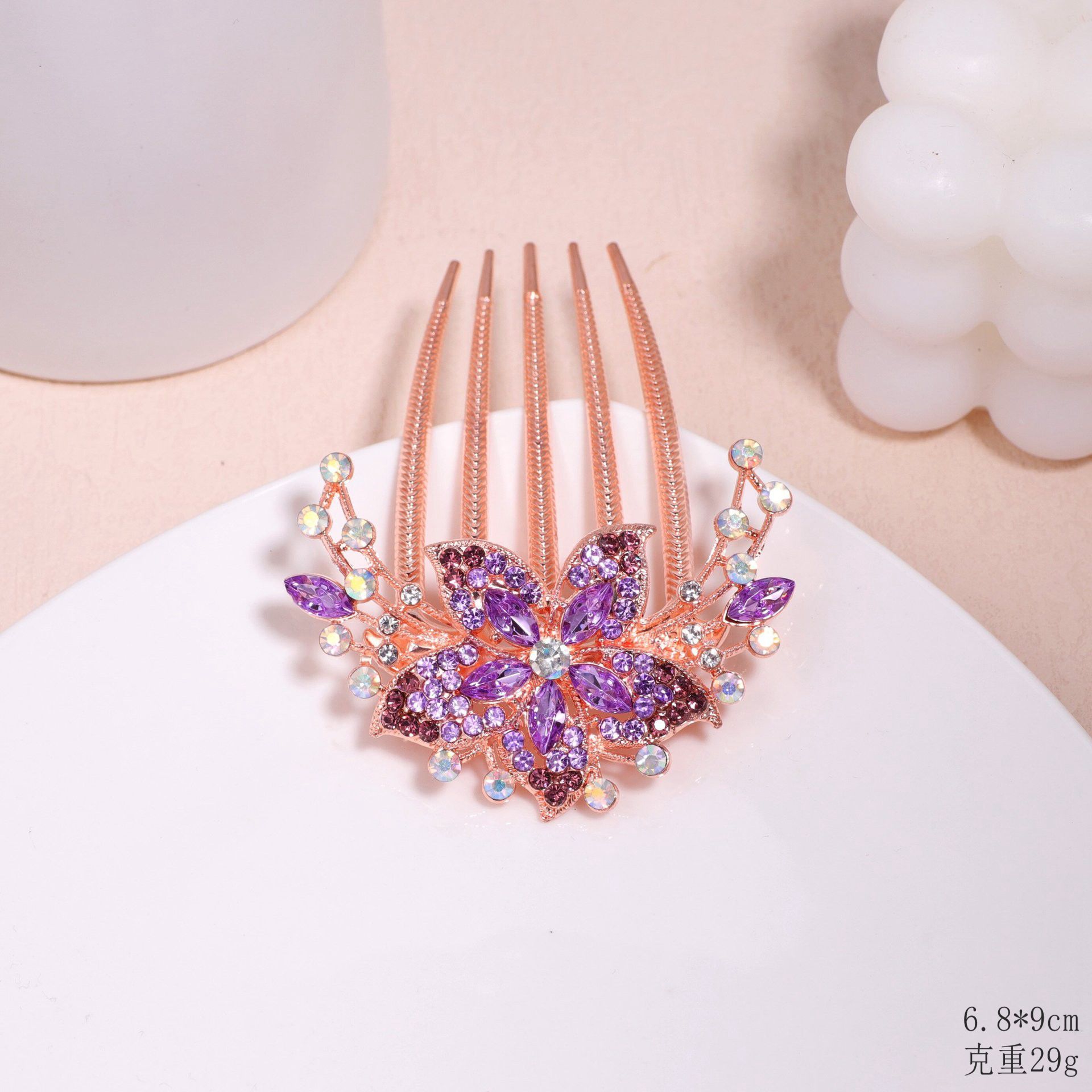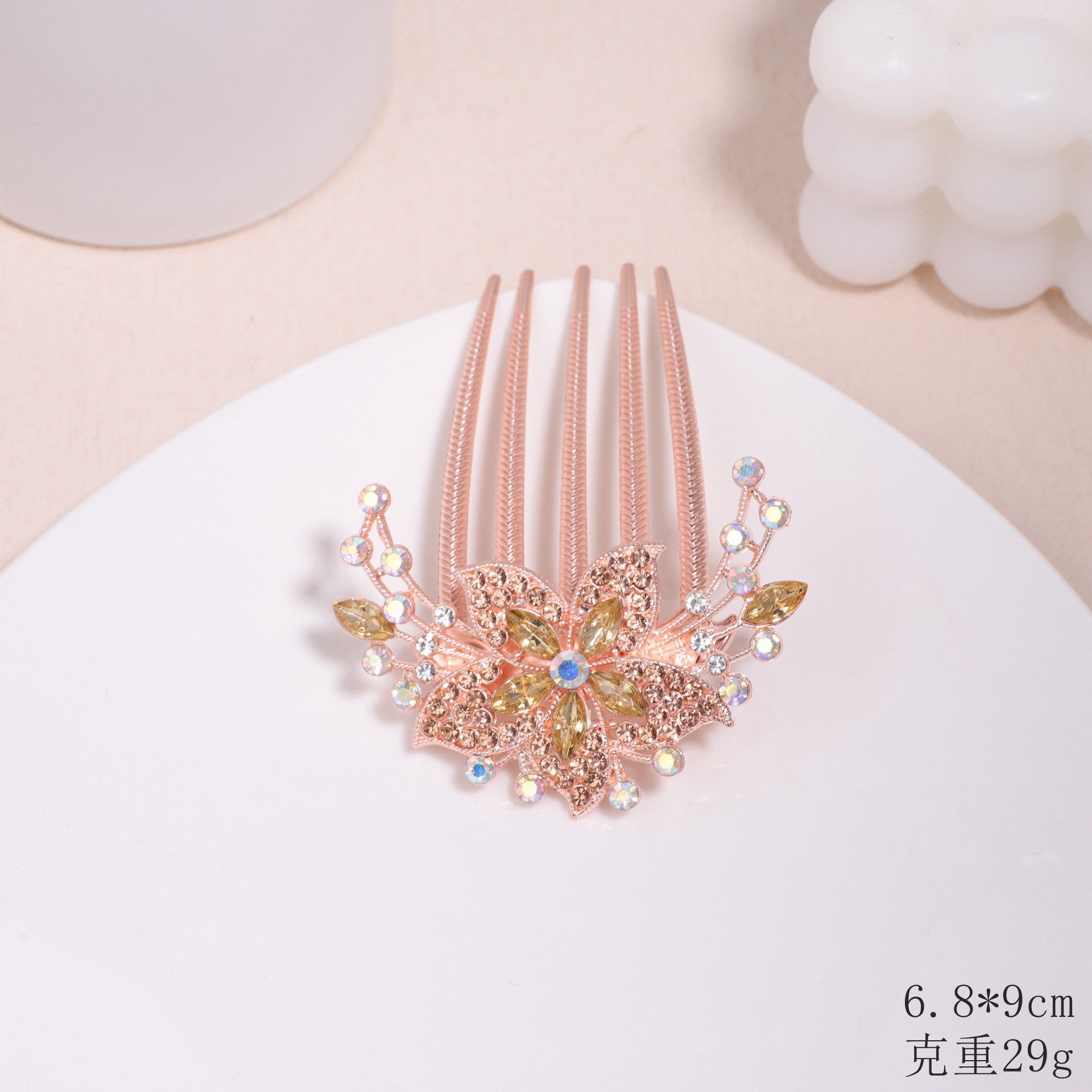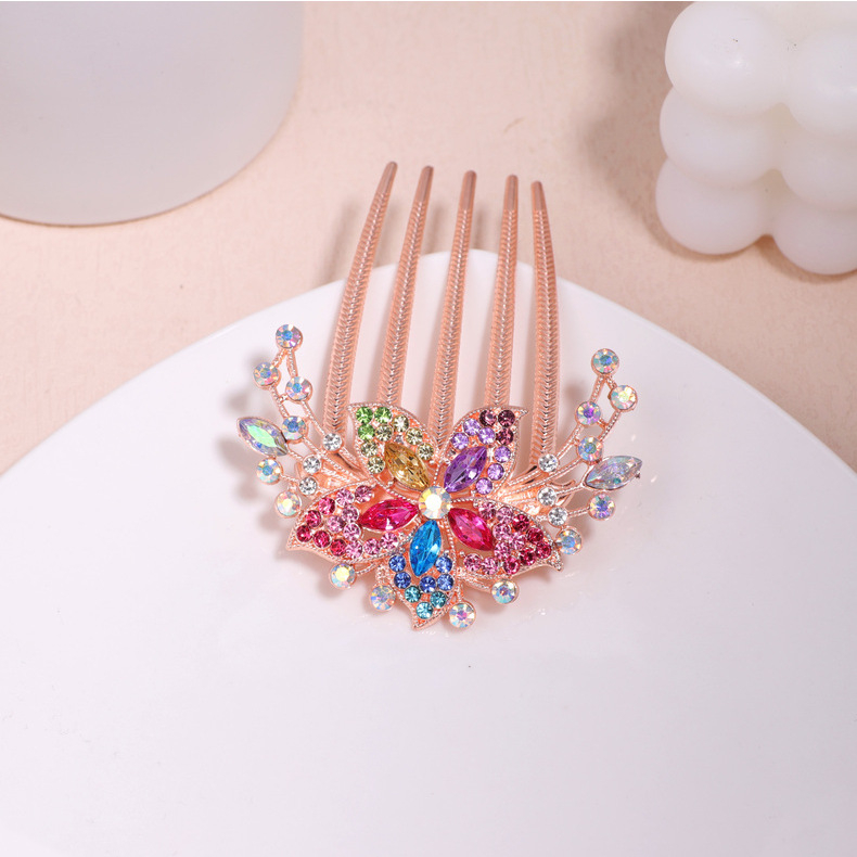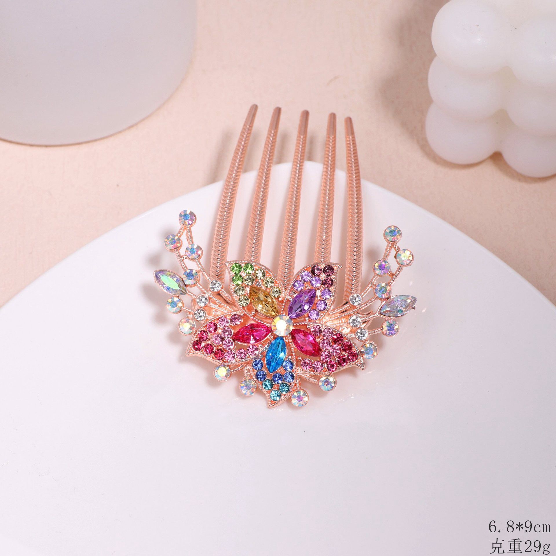 한국 스타일의 물방울 모양 큐빅 장식 꽃잎 모양 빗, 한국 신상 헤어 액세서리, 5치 빗, 다용도 머리핀, 포니테일, 도금 도매