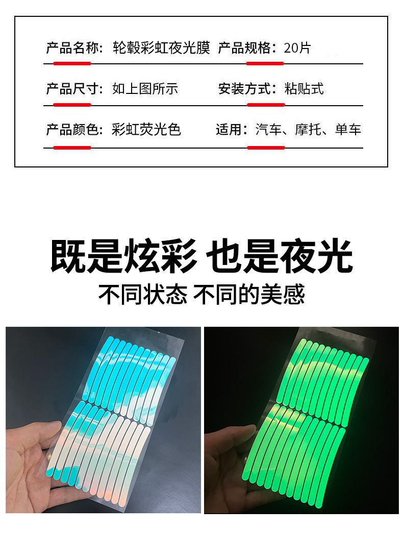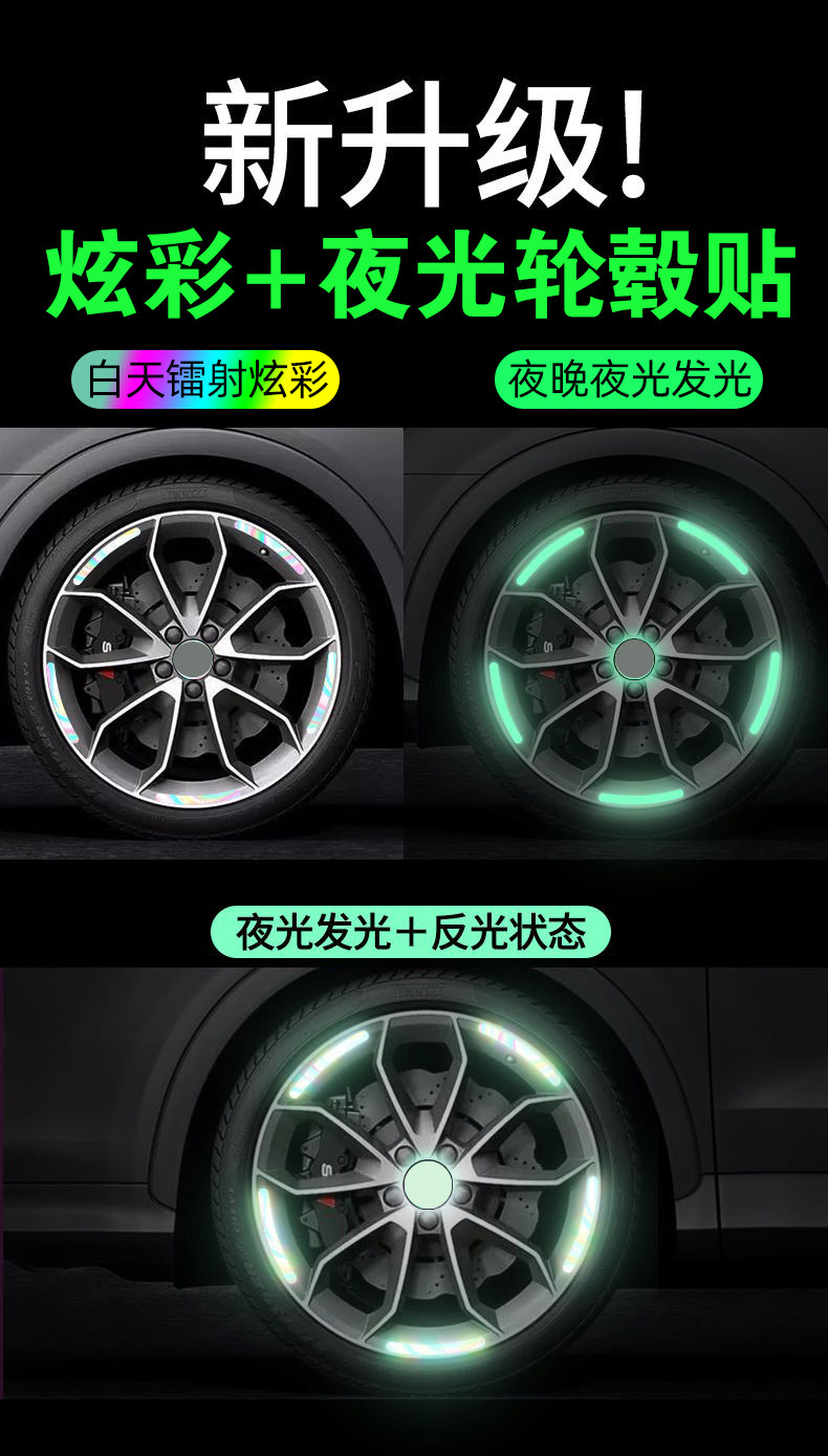 새로운 자동차 무지개 바퀴 허브 반사 스티커 개인화 된 창조적 인 오토바이 전기 자동차 스티커 빛나는 타이어 경고 장식스토어 가기