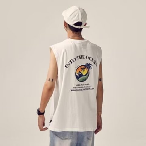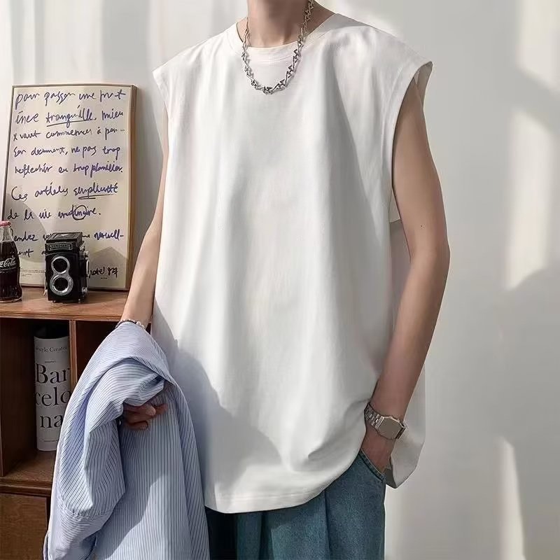여름 새 스타일 코튼 민소매 조끼 남자 디자인 유행 브랜드 느슨한 양복 조끼 조끼 유행 잘 생긴 티셔츠 탑스토어 가기