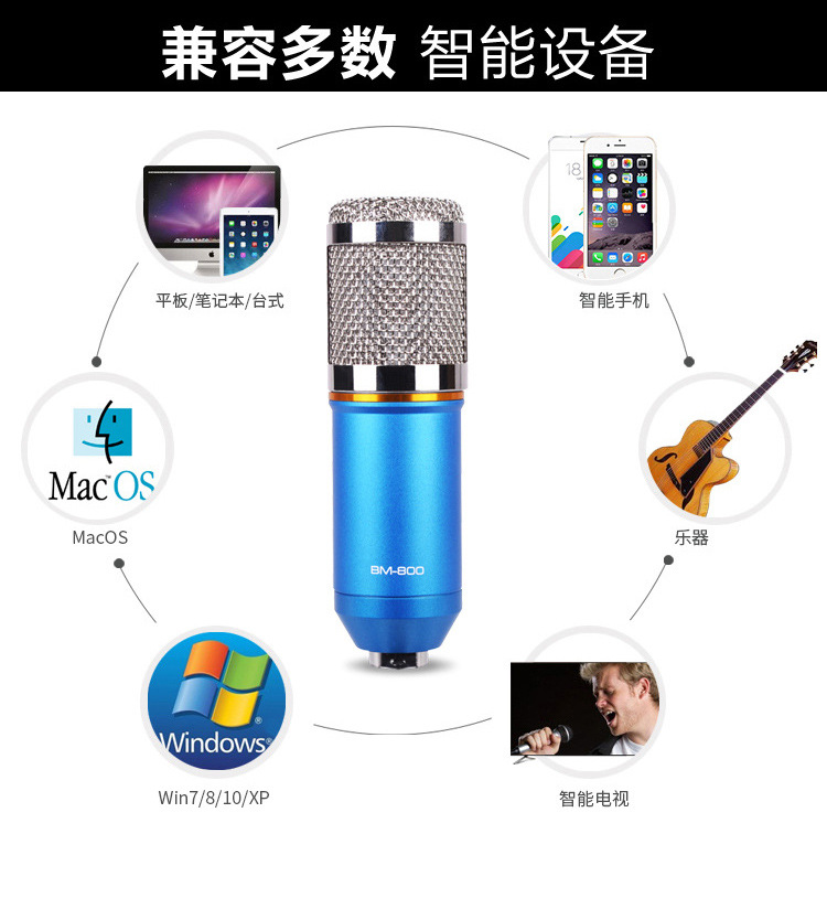 BM800 콘덴서 마이크 라이브 K 노래 녹음 USB 라이브 컴퓨터 마이크 장비 도매 전용 국경스토어 가기