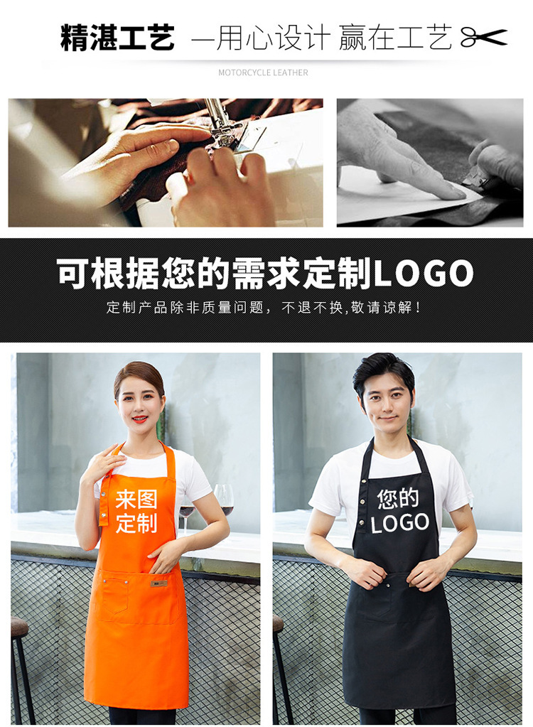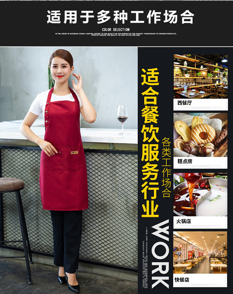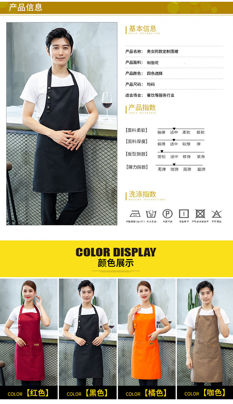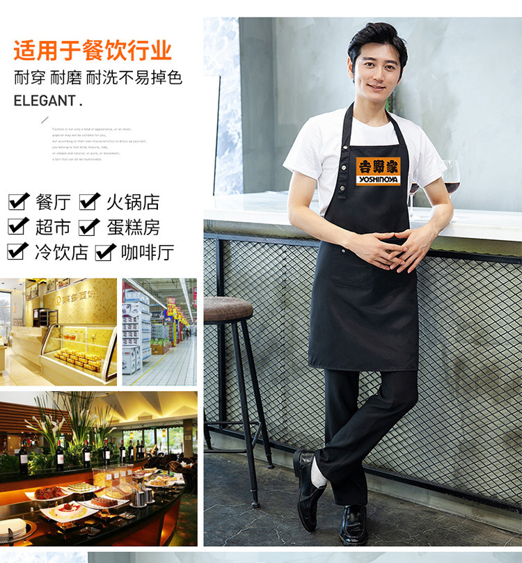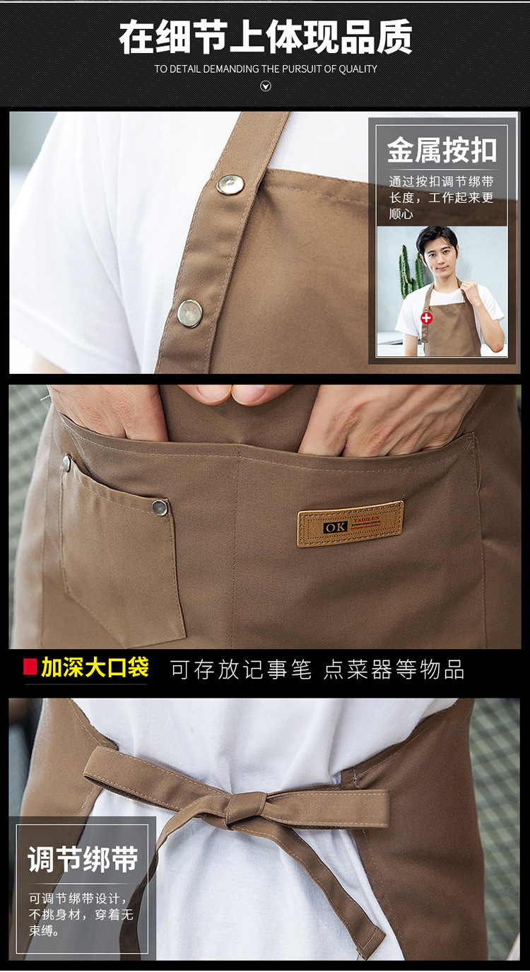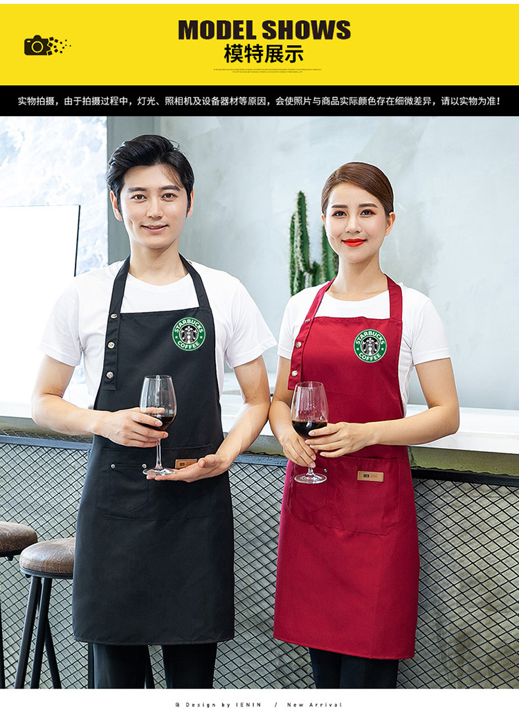 모던 심플 넥 앞치마 플라스틱 버클 레이스 업 조절 가능한 레스토랑 커피 숍 웨이터 작업복 앞치마 도매