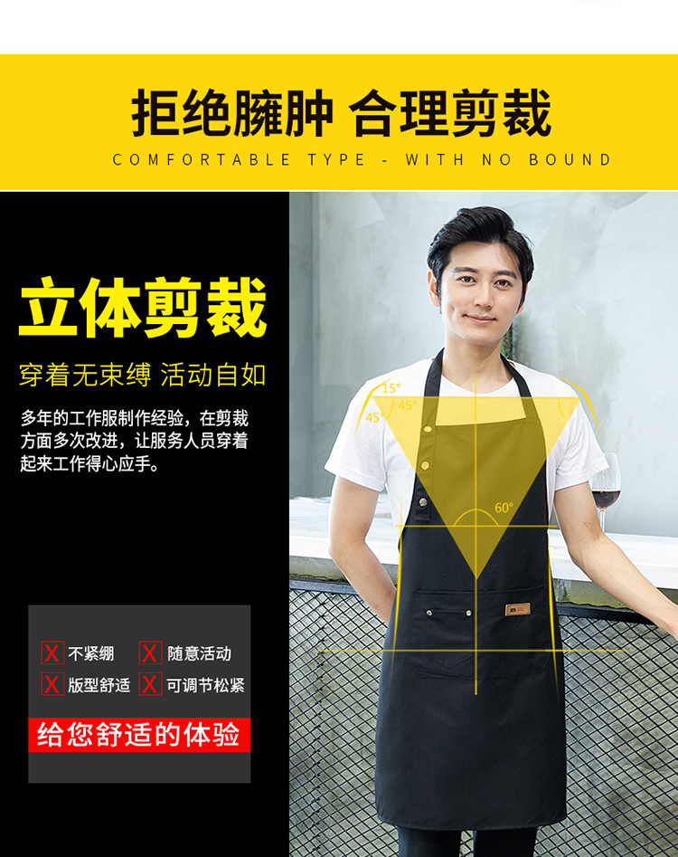 모던 심플 넥 앞치마 플라스틱 버클 레이스 업 조절 가능한 레스토랑 커피 숍 웨이터 작업복 앞치마 도매스토어 가기