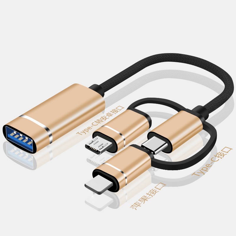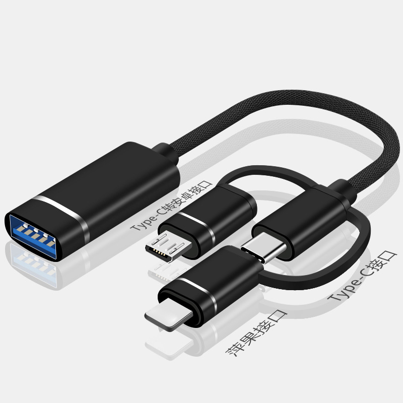 OTG 어댑터 케이블 USB-애플 타입C 안드로이드 3-in-1 다기능 어댑터 케이블 컴퓨터 휴대폰 변환기