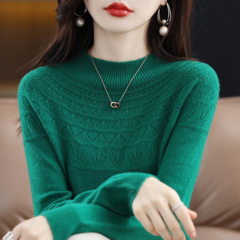 가을과 겨울 신상품 일선 하프 터틀넥 스웨터 여성용 슬리밍 캐시미어 베이스 셔츠 두꺼운 원활한 스웨터 트렌디 스웨터스토어 가기