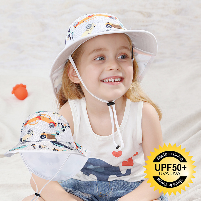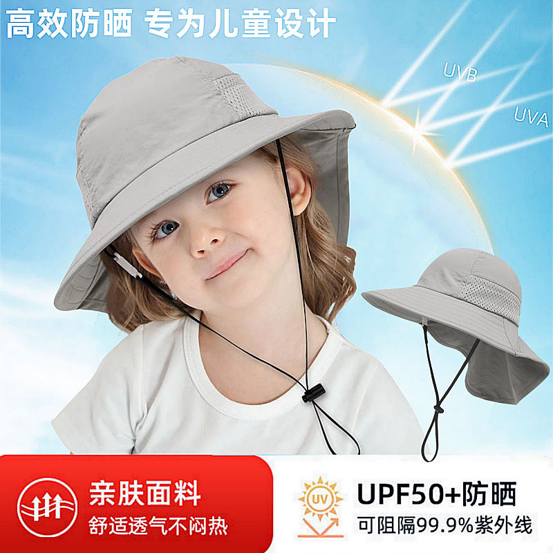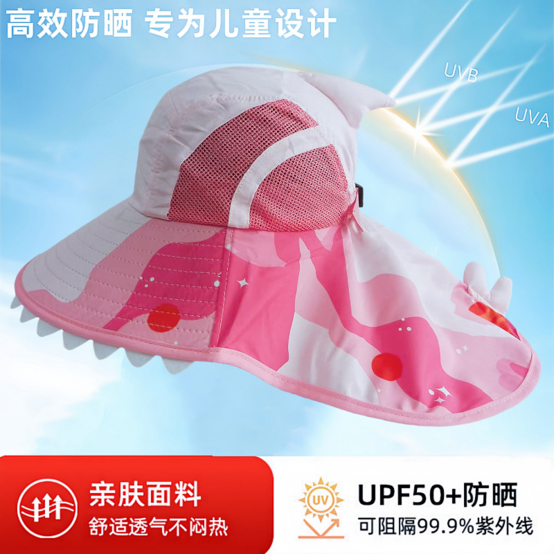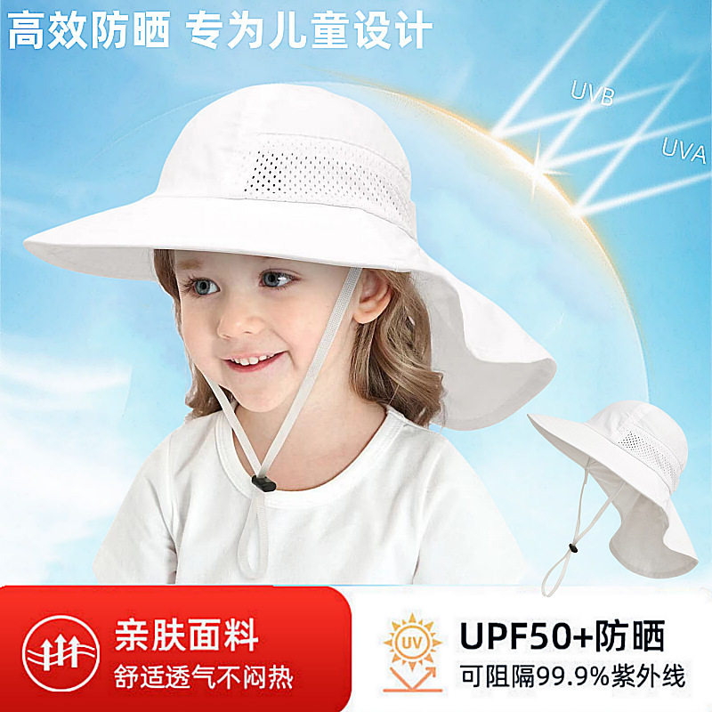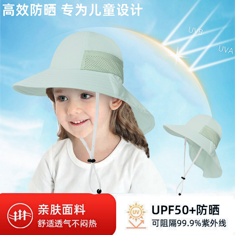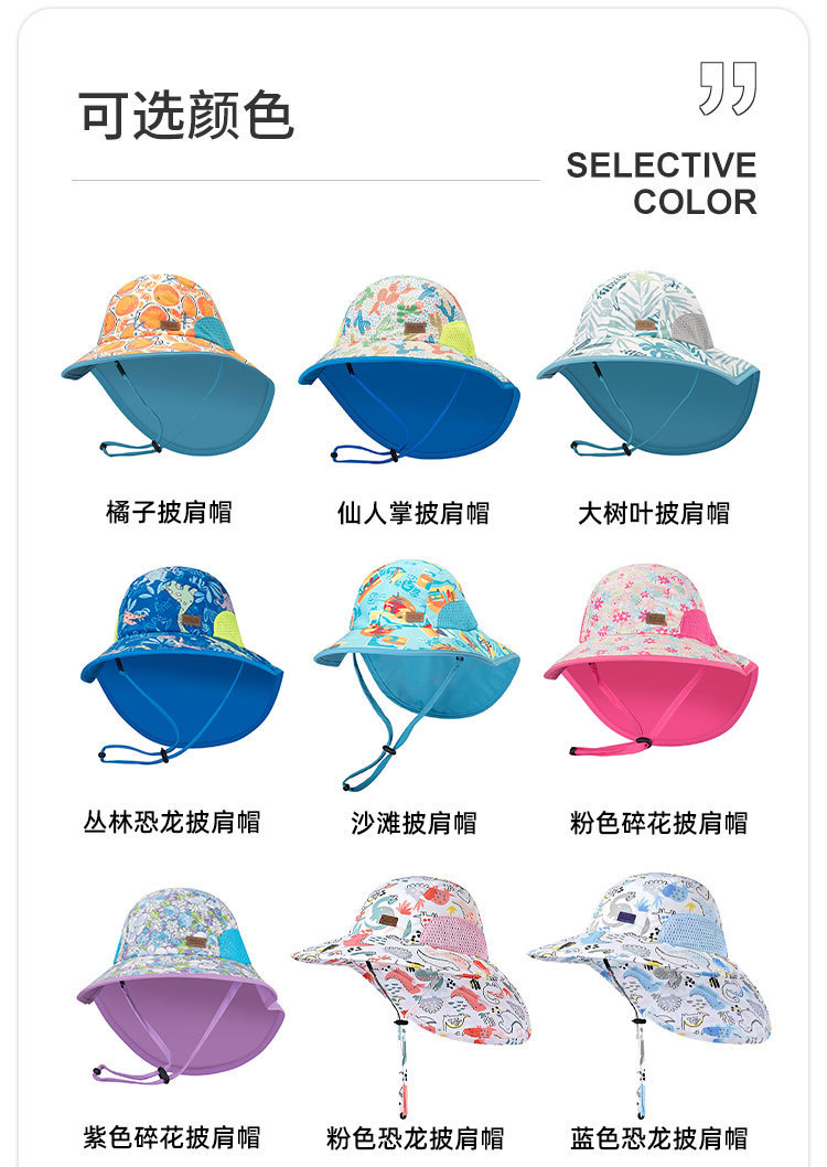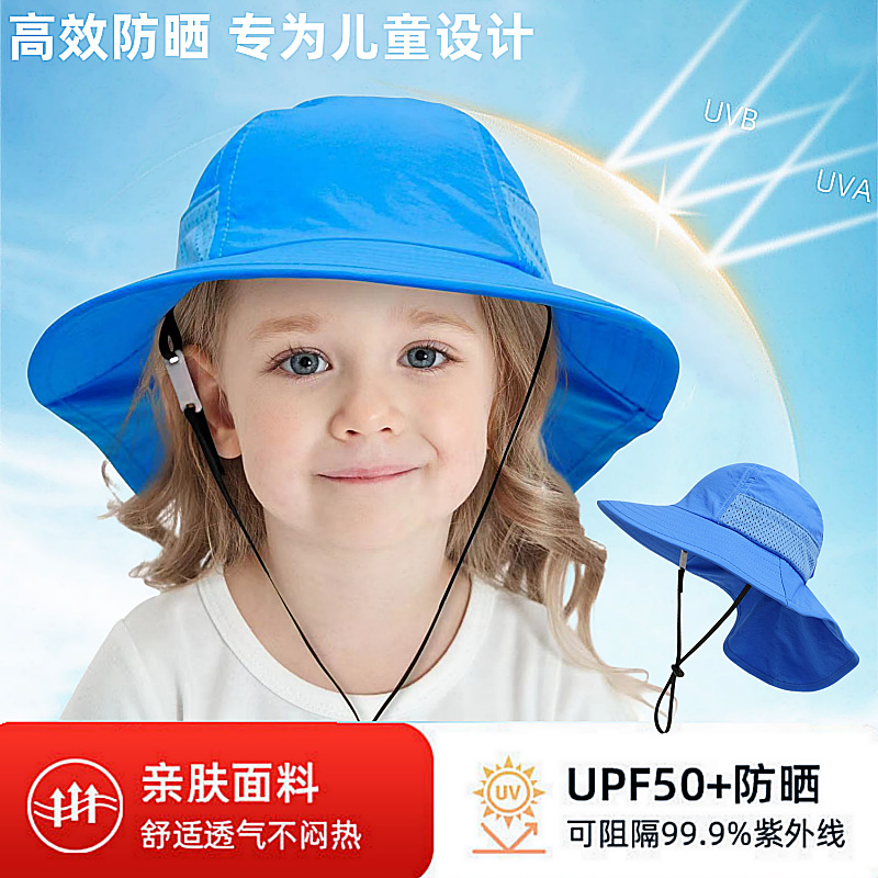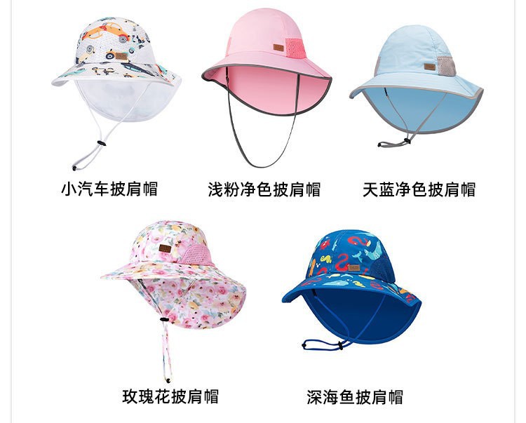 夏季儿童防晒帽女大帽檐渔夫帽可爱卡通遮阳帽宝宝婴儿护颈披肩帽