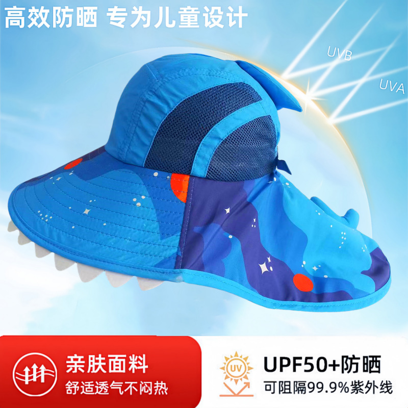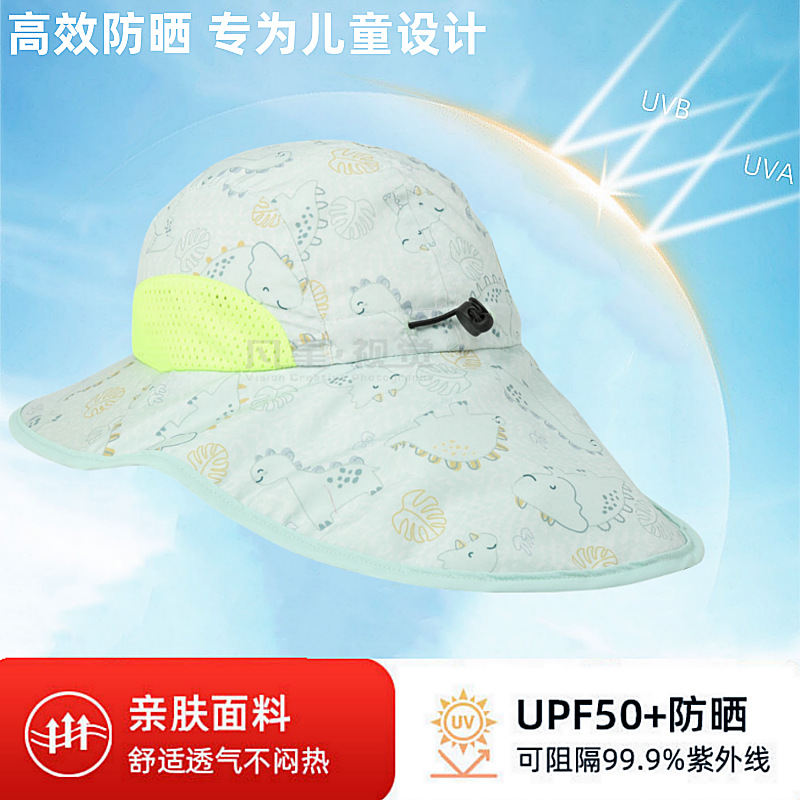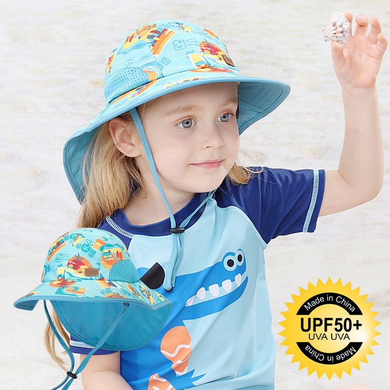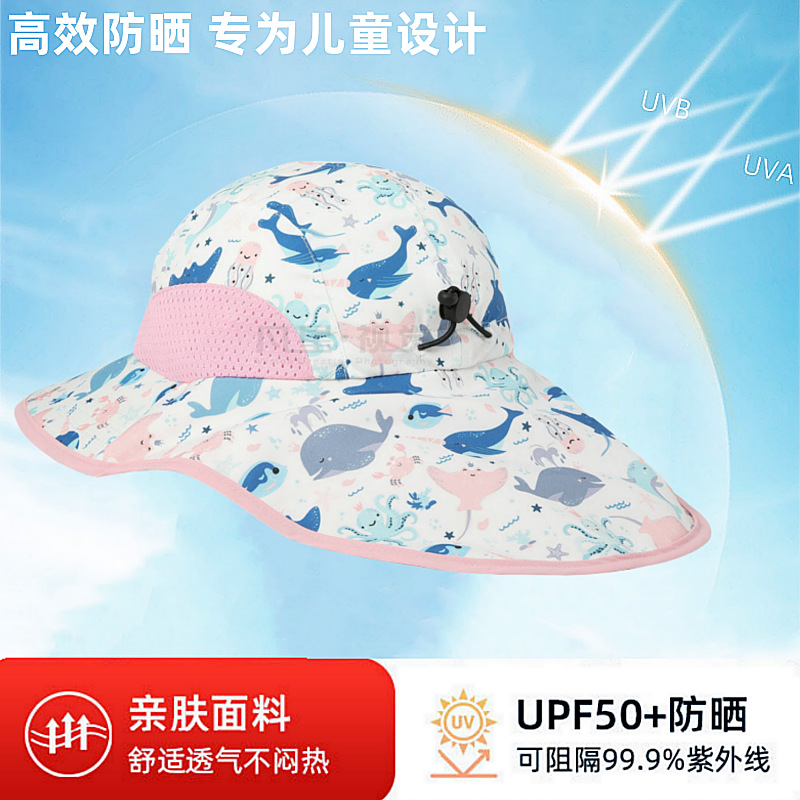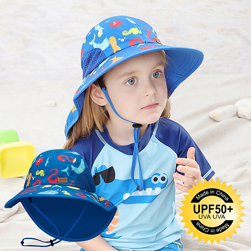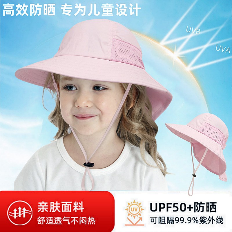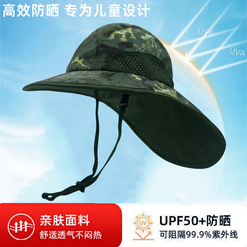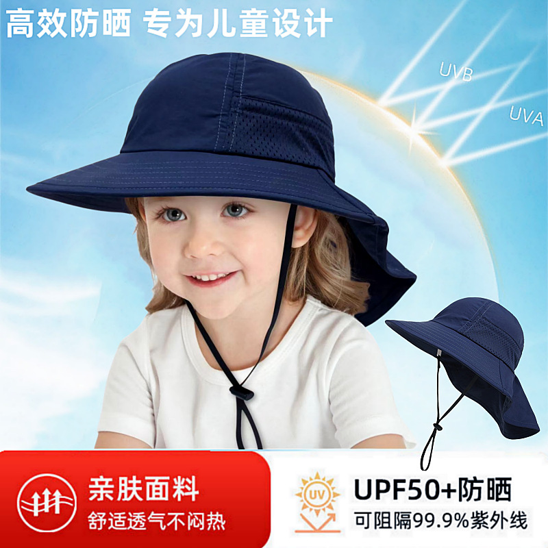 夏季儿童防晒帽女大帽檐渔夫帽可爱卡通遮阳帽宝宝婴儿护颈披肩帽