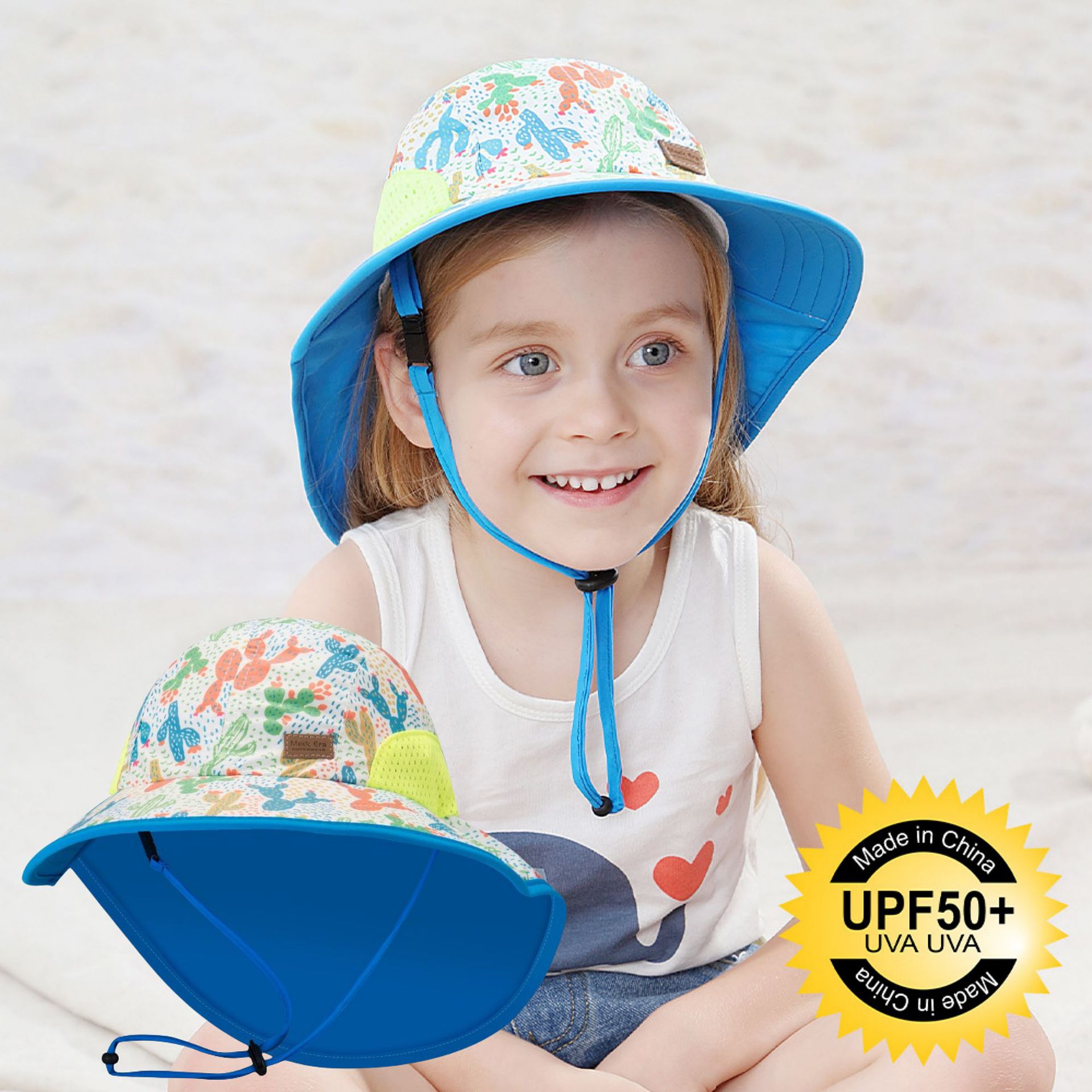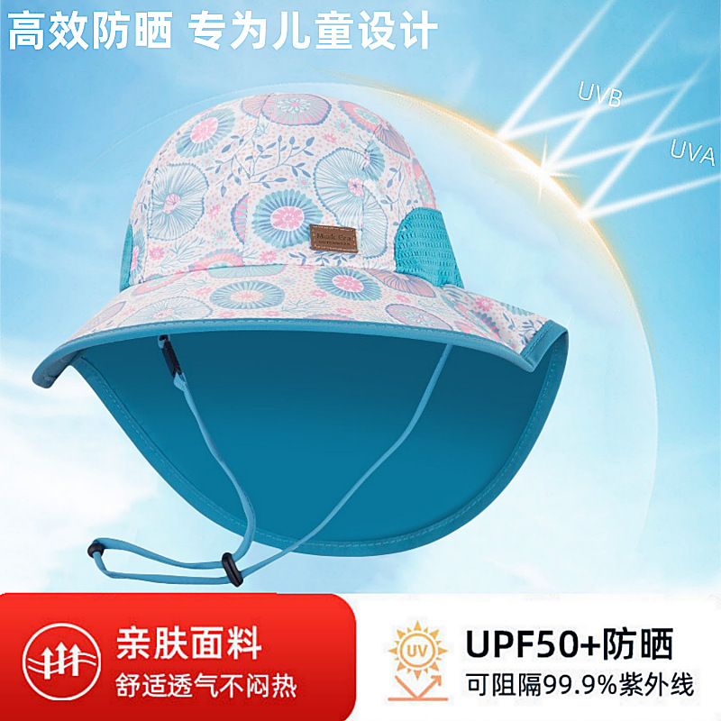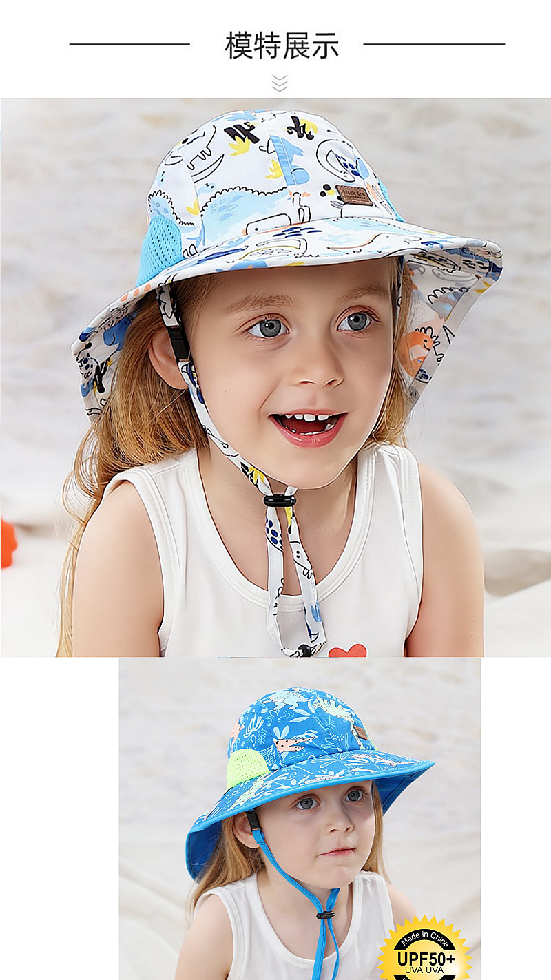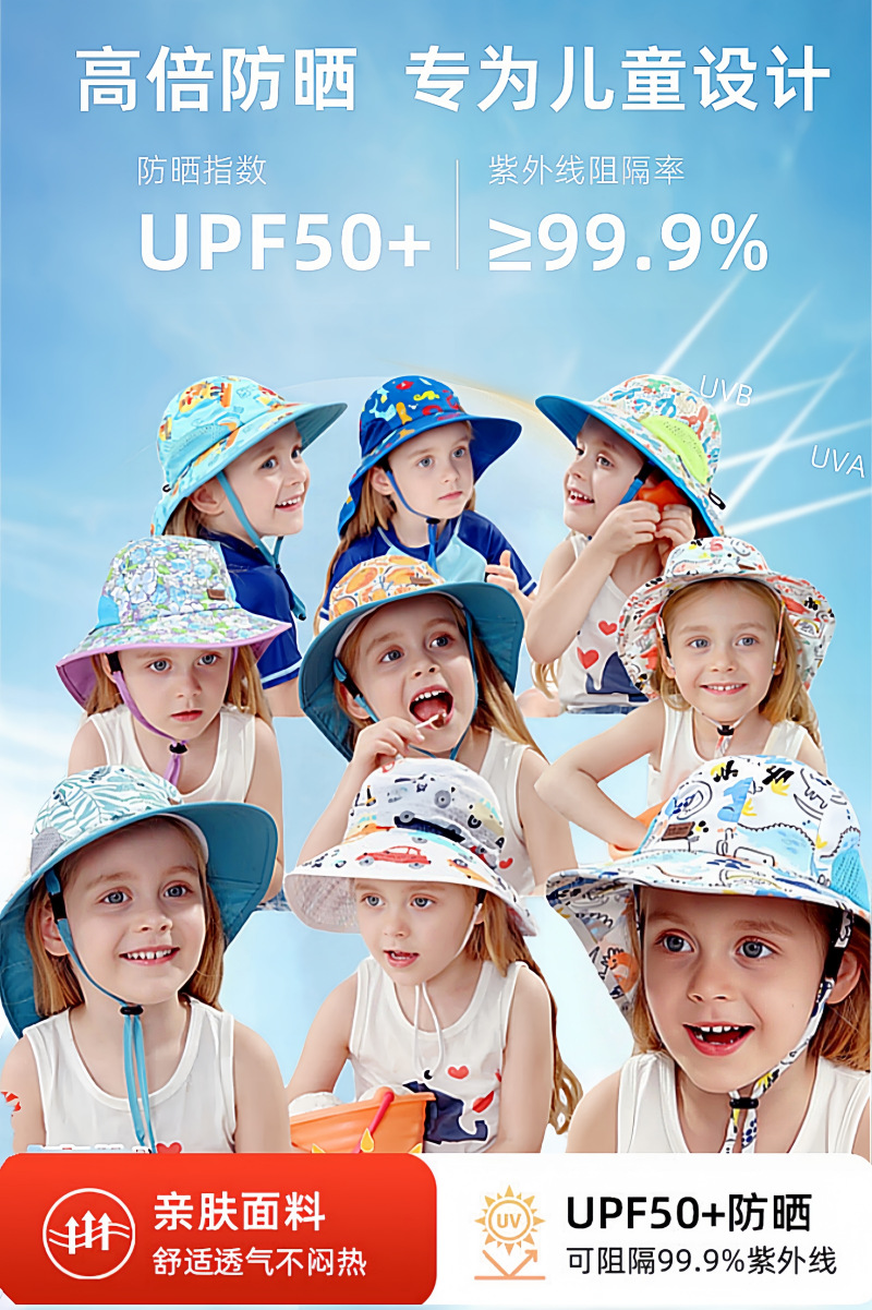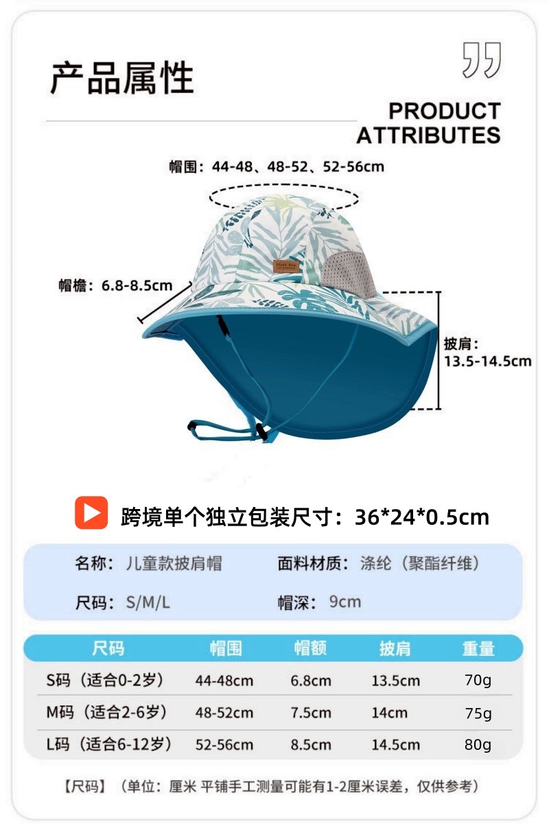 夏季儿童防晒帽女大帽檐渔夫帽可爱卡通遮阳帽宝宝婴儿护颈披肩帽