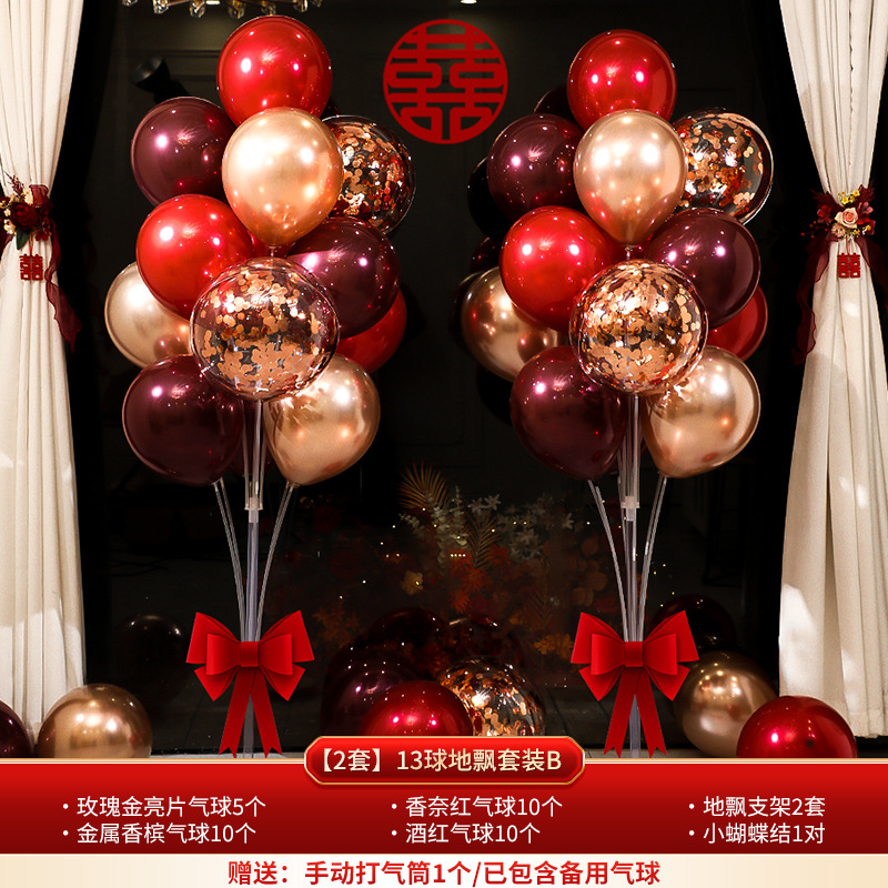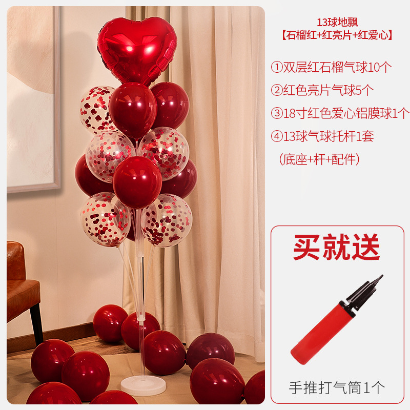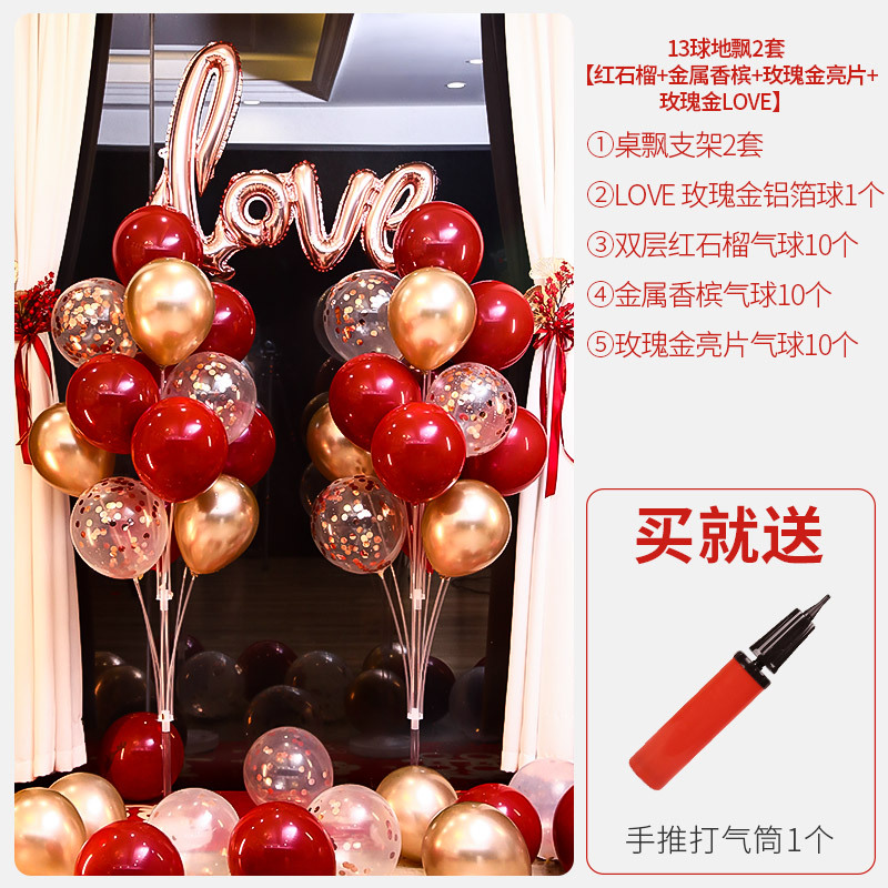 • 13 볼 플로팅 2 세트 [레드 석류 + 메탈 샴페인 + 스팽글 + LOVE]