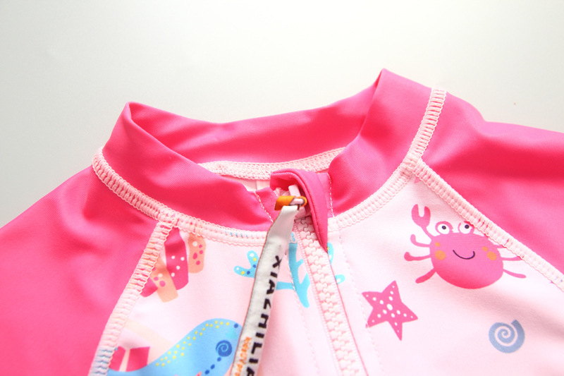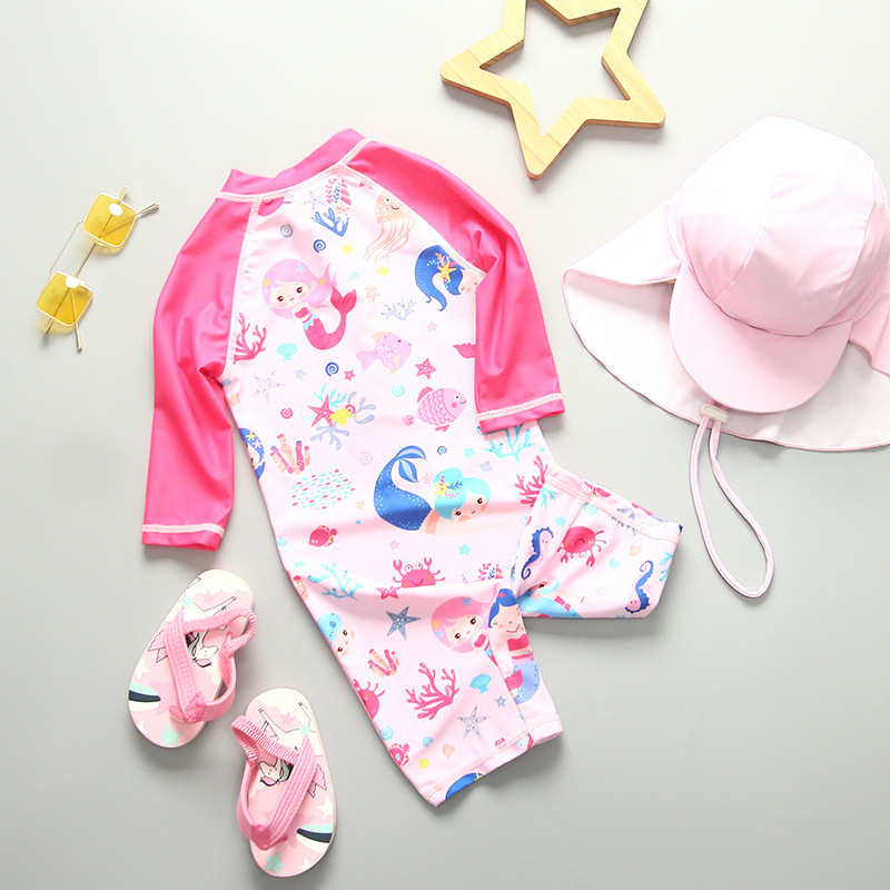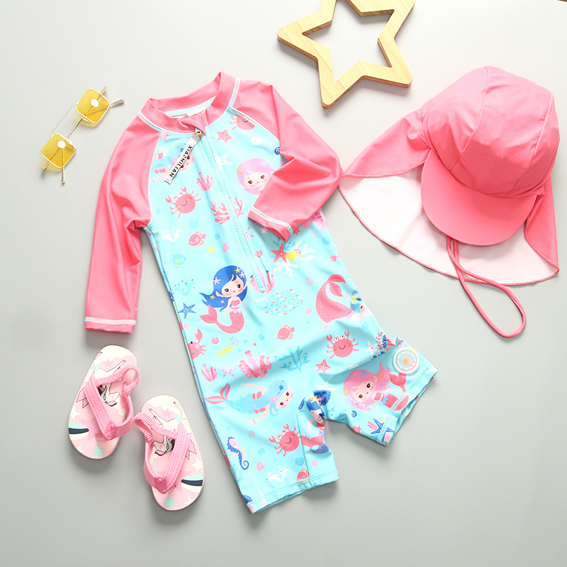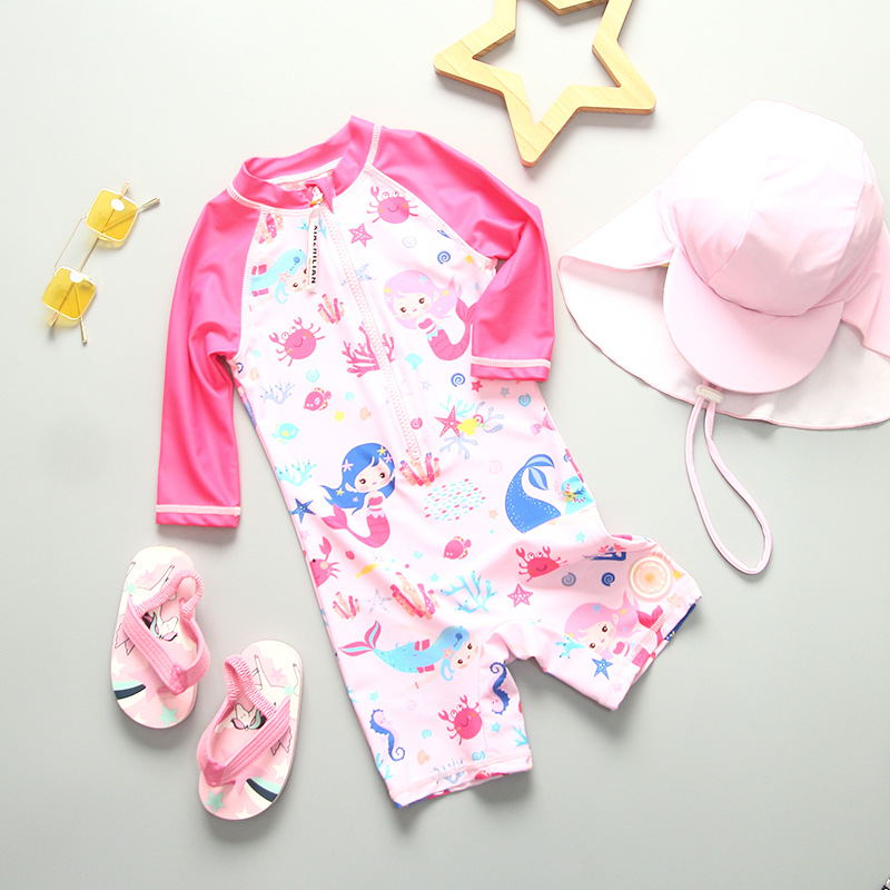 새로운 어린이 원피스 서퍼 긴팔 아기 소녀의 귀여운 아기 프린트 자외선 차단제 수영복