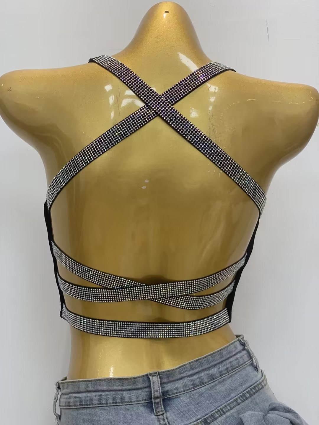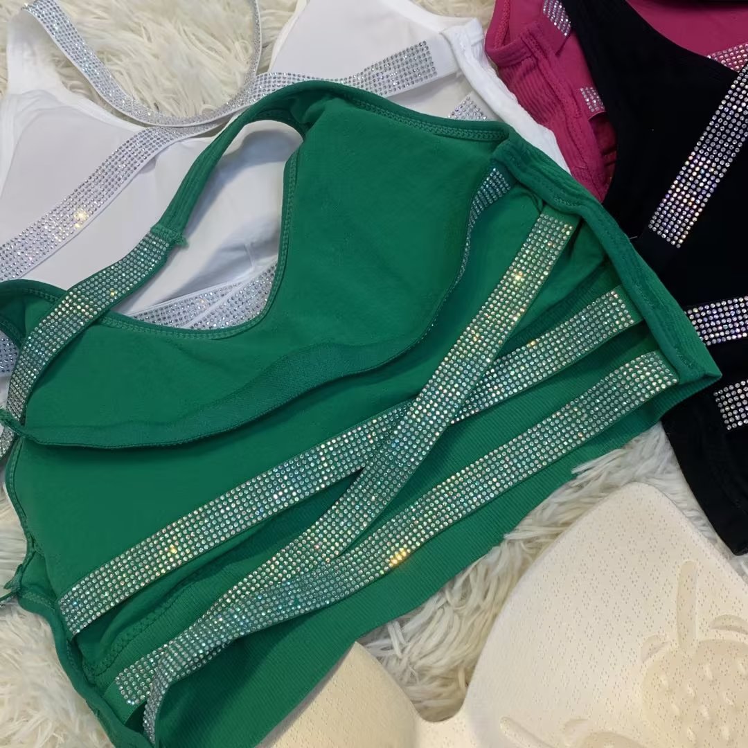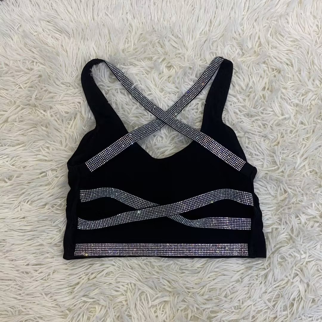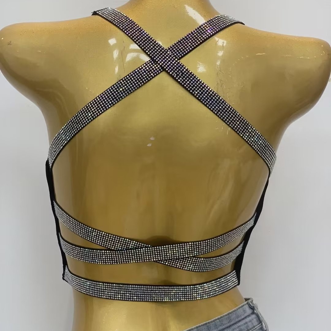 여름철 섹시한 여성들이 입는 섹시한 등이 드러나는 짧은 멀티 스트랩 디자인의 라텍스 컵탑, 패셔너블한 여성 의류 품질