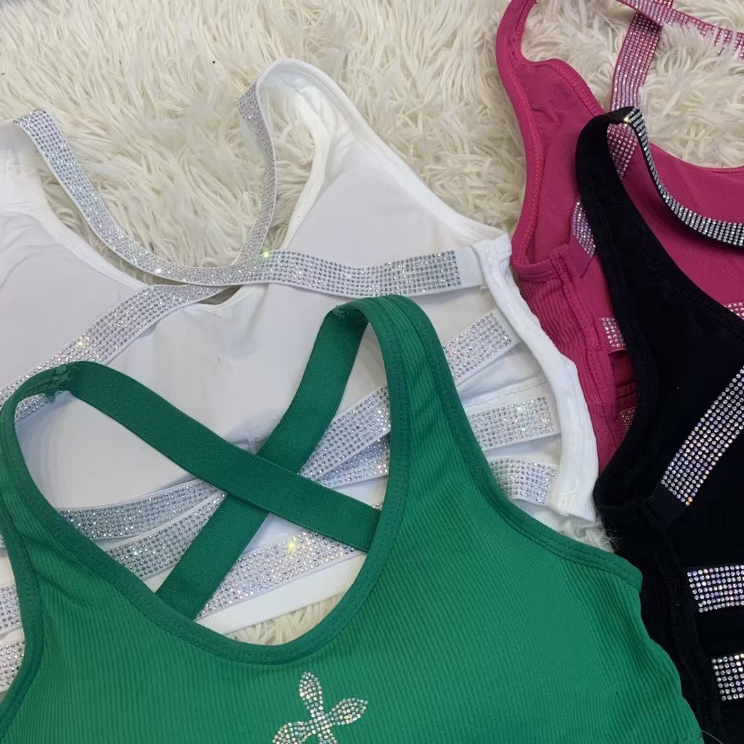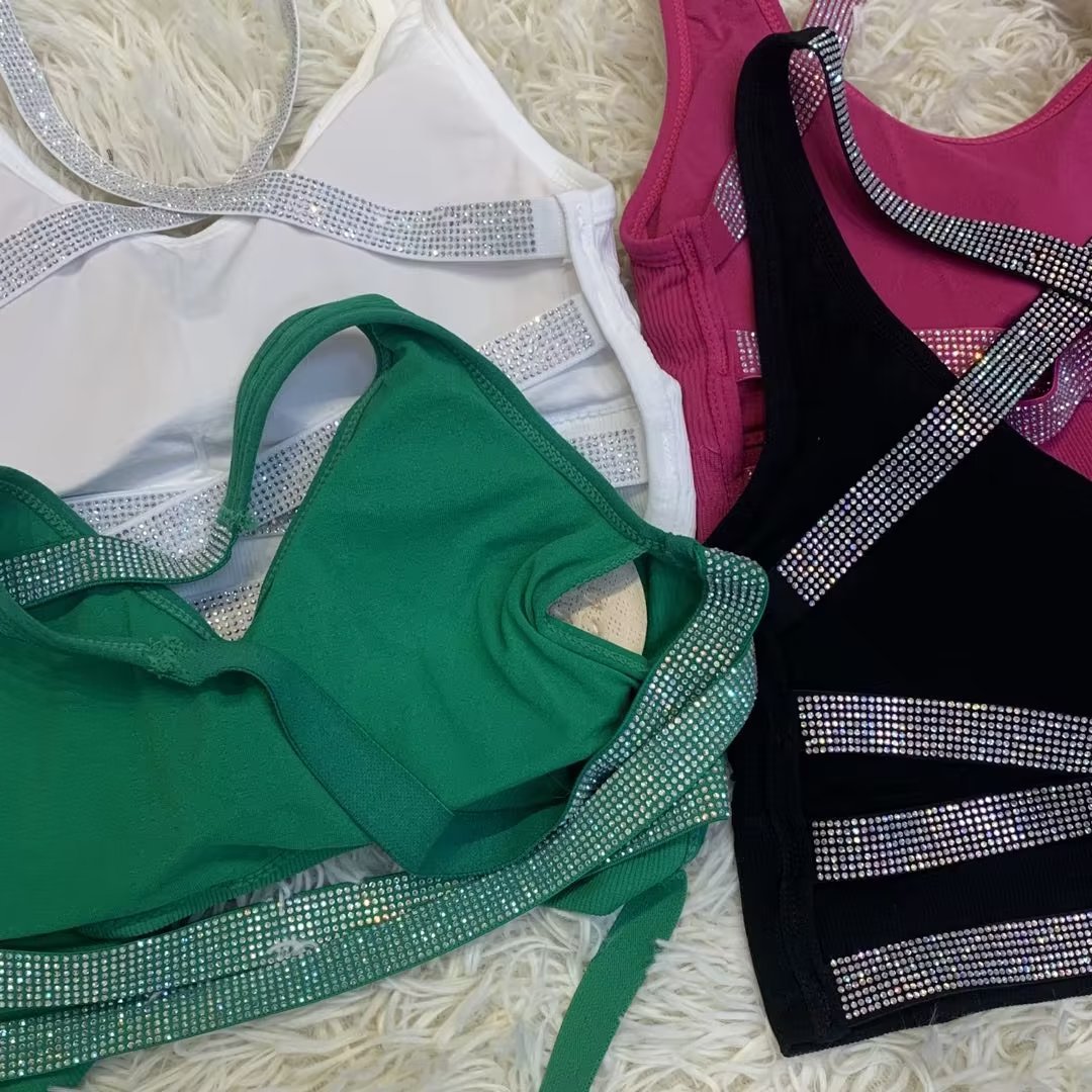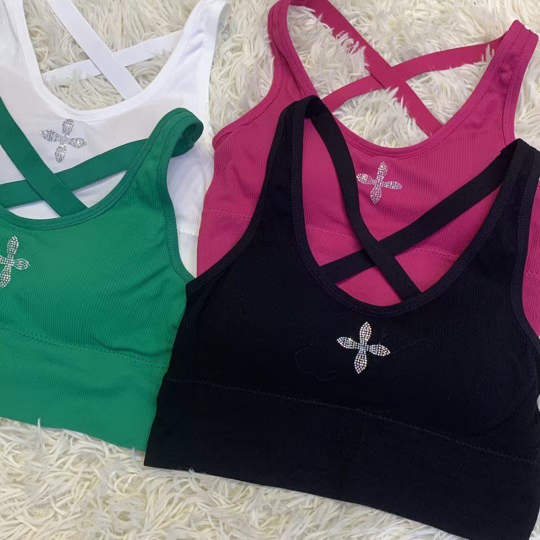 여름철 섹시한 여성들이 입는 섹시한 등이 드러나는 짧은 멀티 스트랩 디자인의 라텍스 컵탑, 패셔너블한 여성 의류 품질