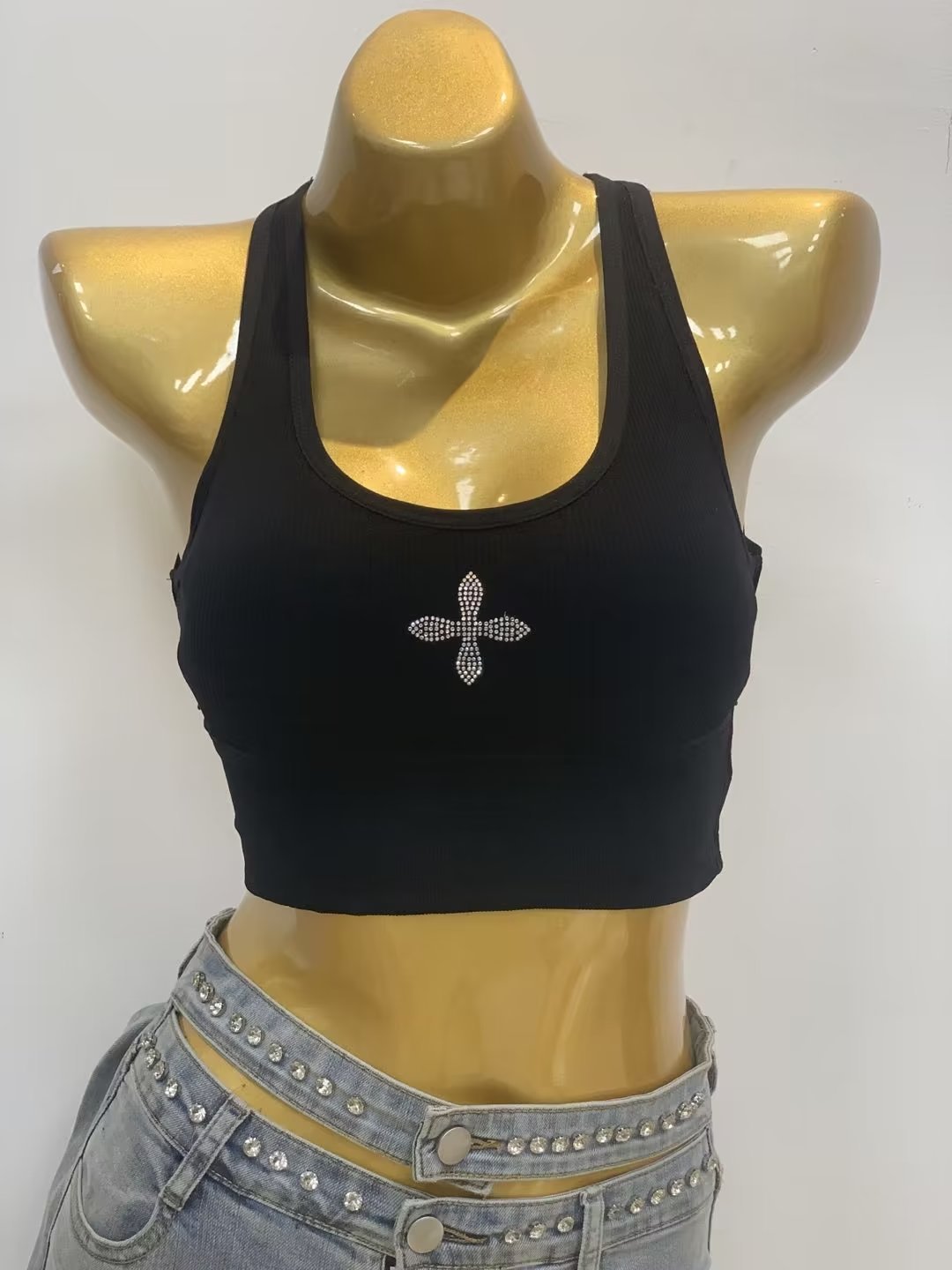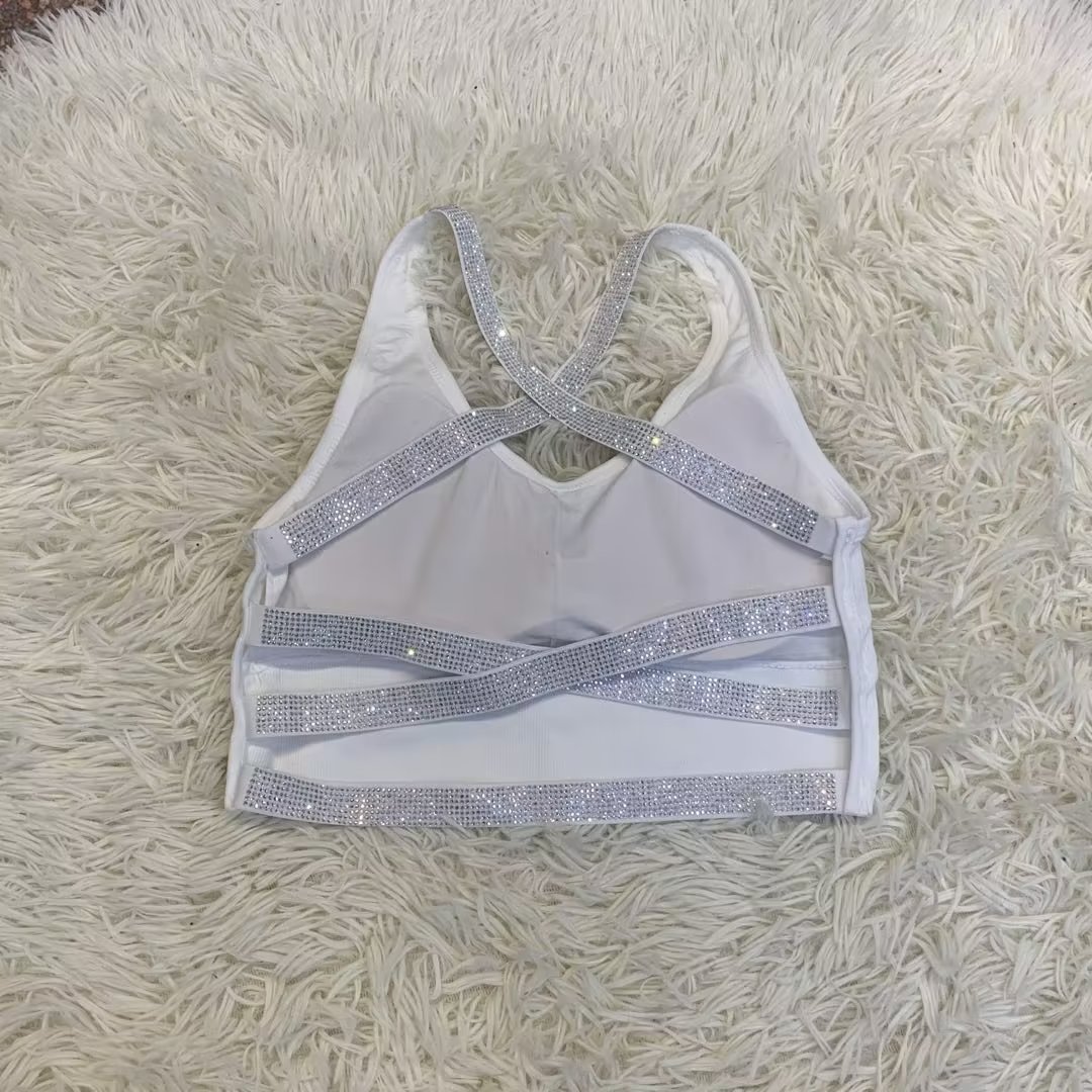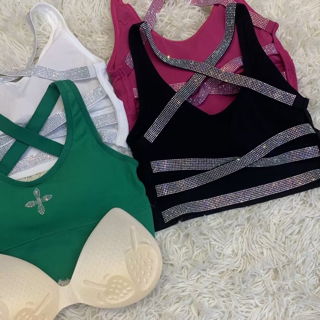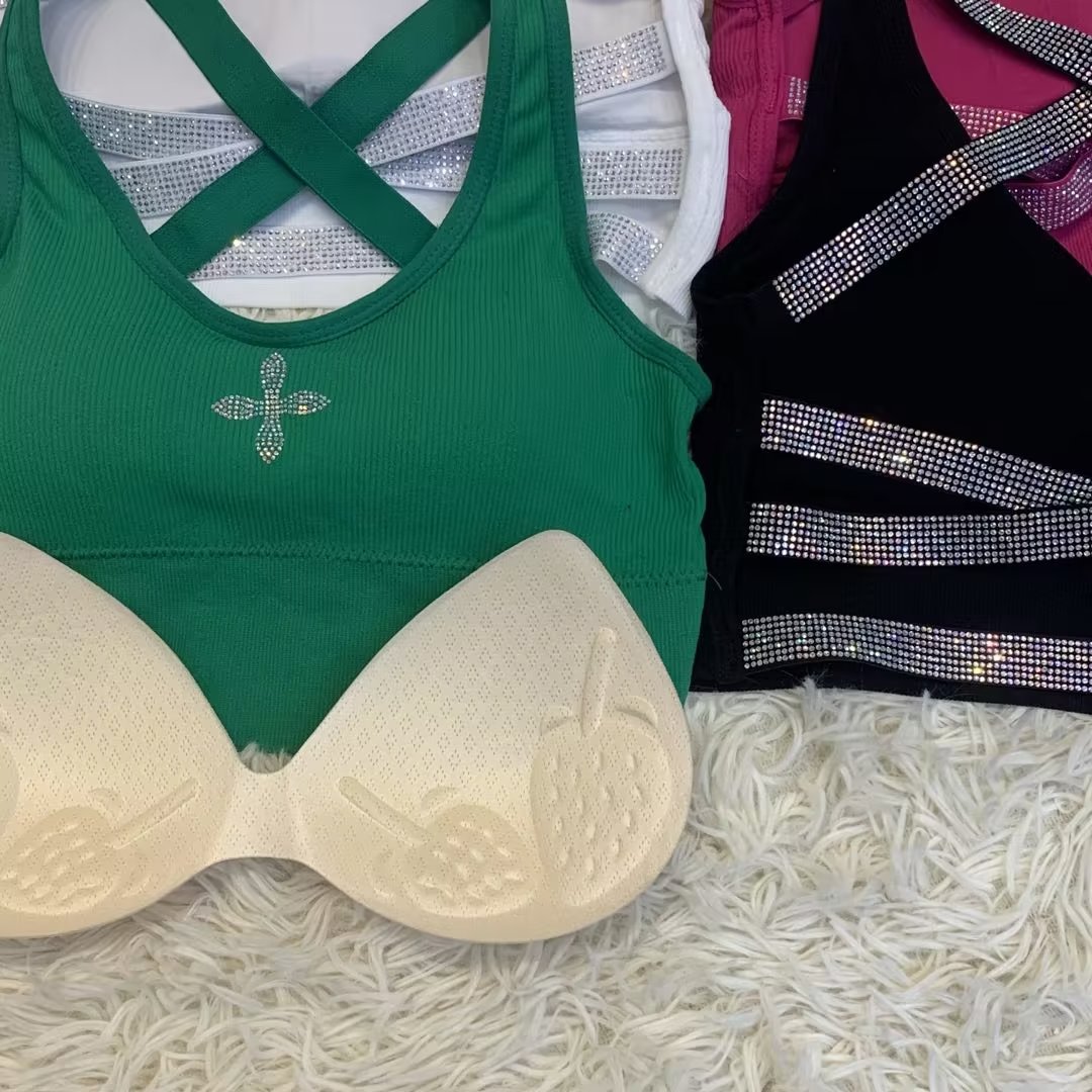 여름철 섹시한 여성들이 입는 섹시한 등이 드러나는 짧은 멀티 스트랩 디자인의 라텍스 컵탑, 패셔너블한 여성 의류 품질