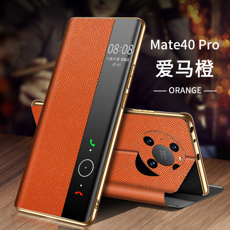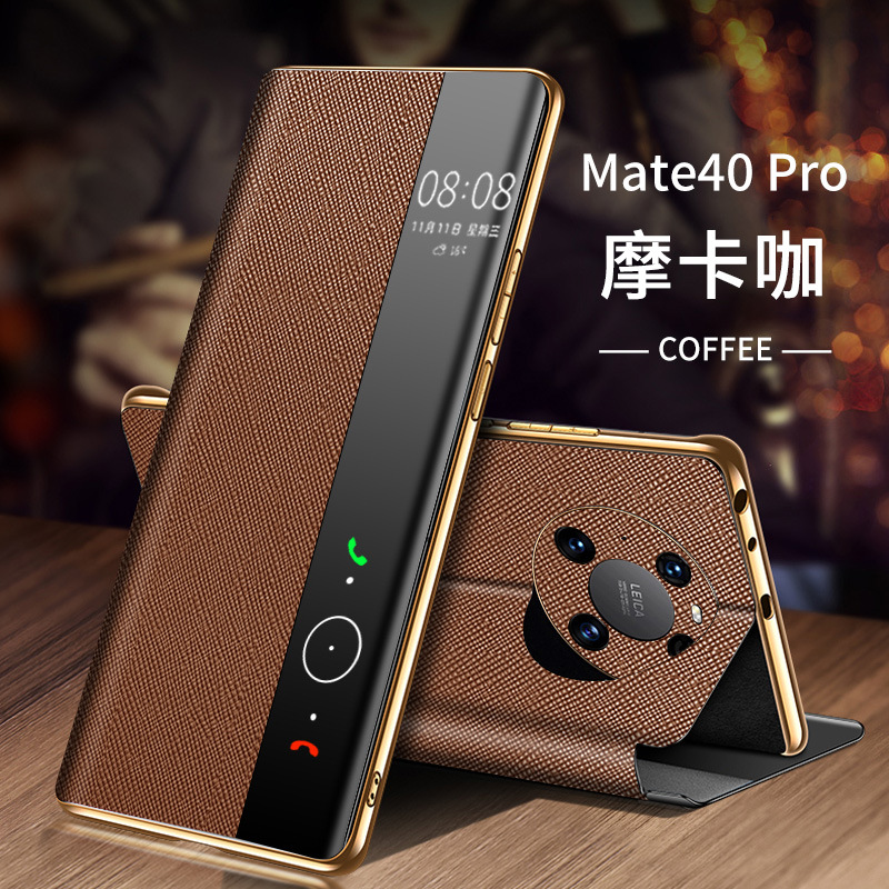 화웨이 메이트 40Pro 휴대 전화 케이스 mte40 정품 가죽 스마트 플립 가죽 케이스 자체 포함 브래킷 전기 도금 소프트 케이스스토어 가기